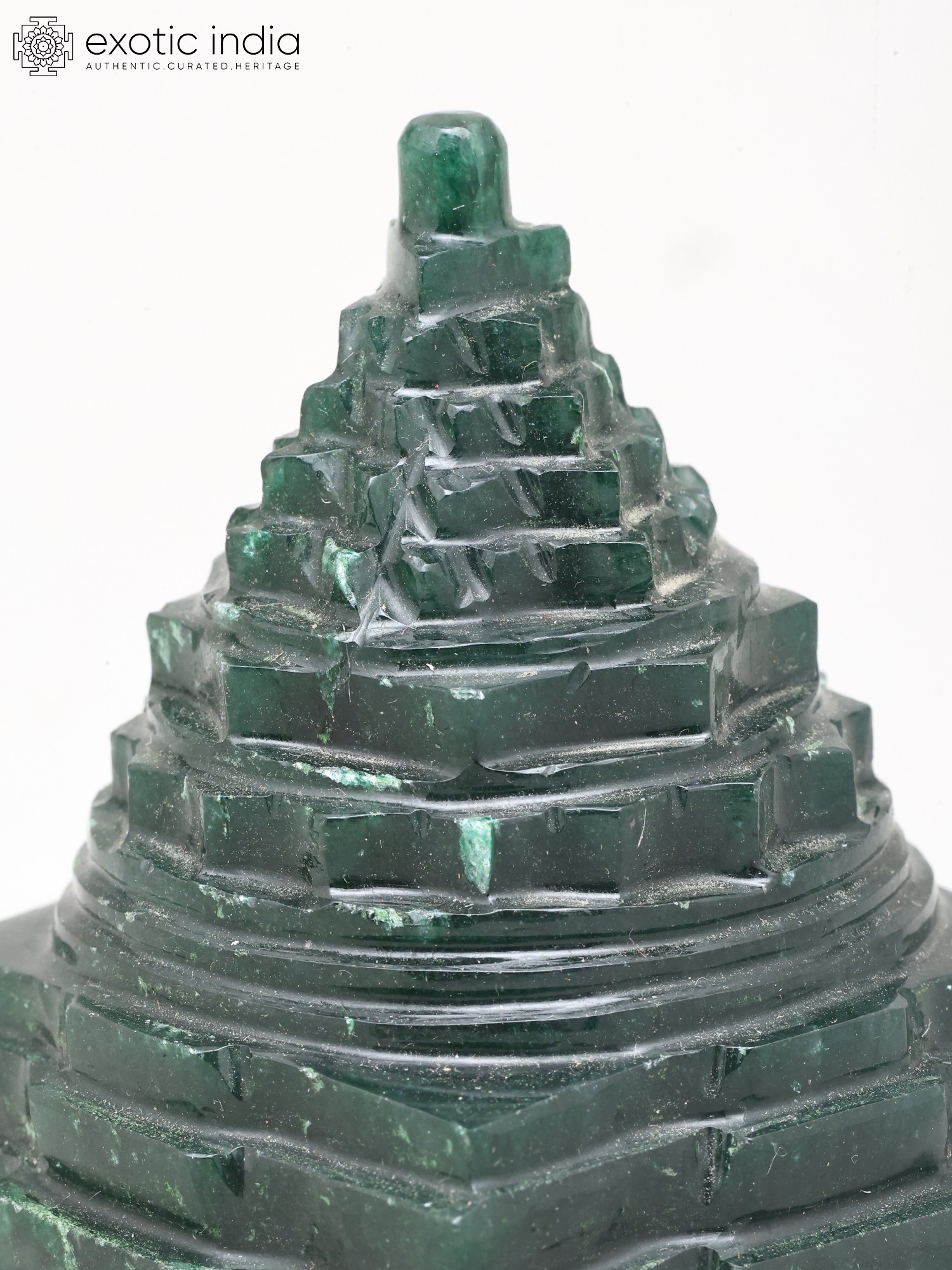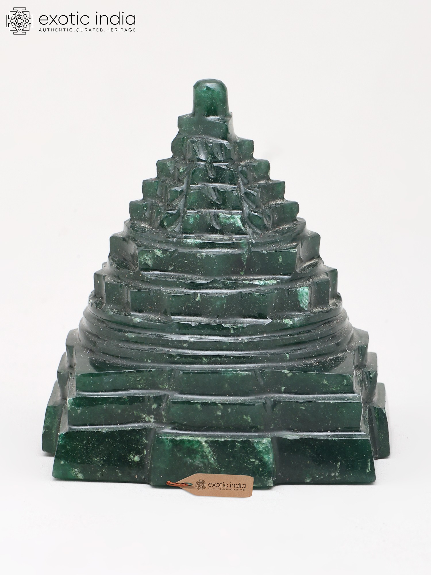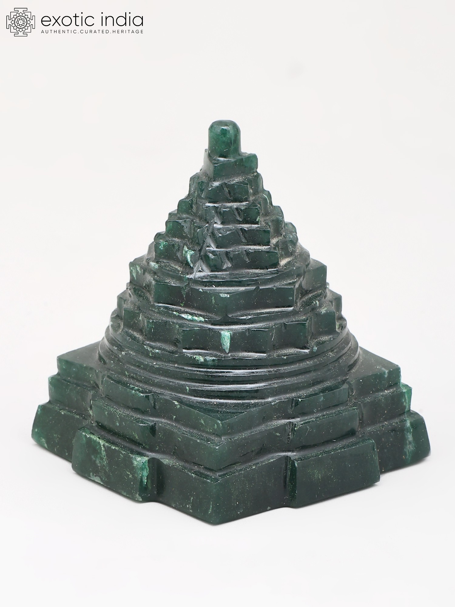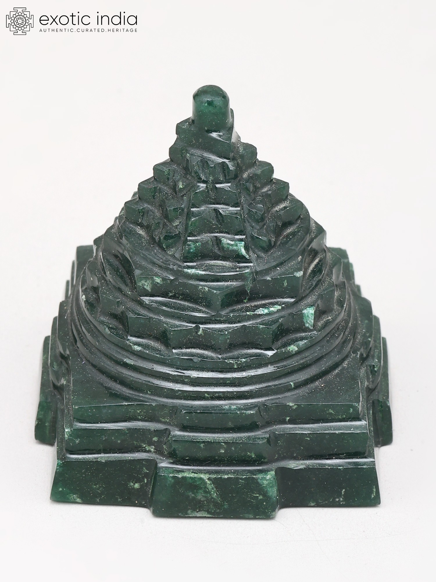 4" Small Shri Yantra (Meru Pyramid) for Wealth and Vastu Remedy | Green Jade Gemstone