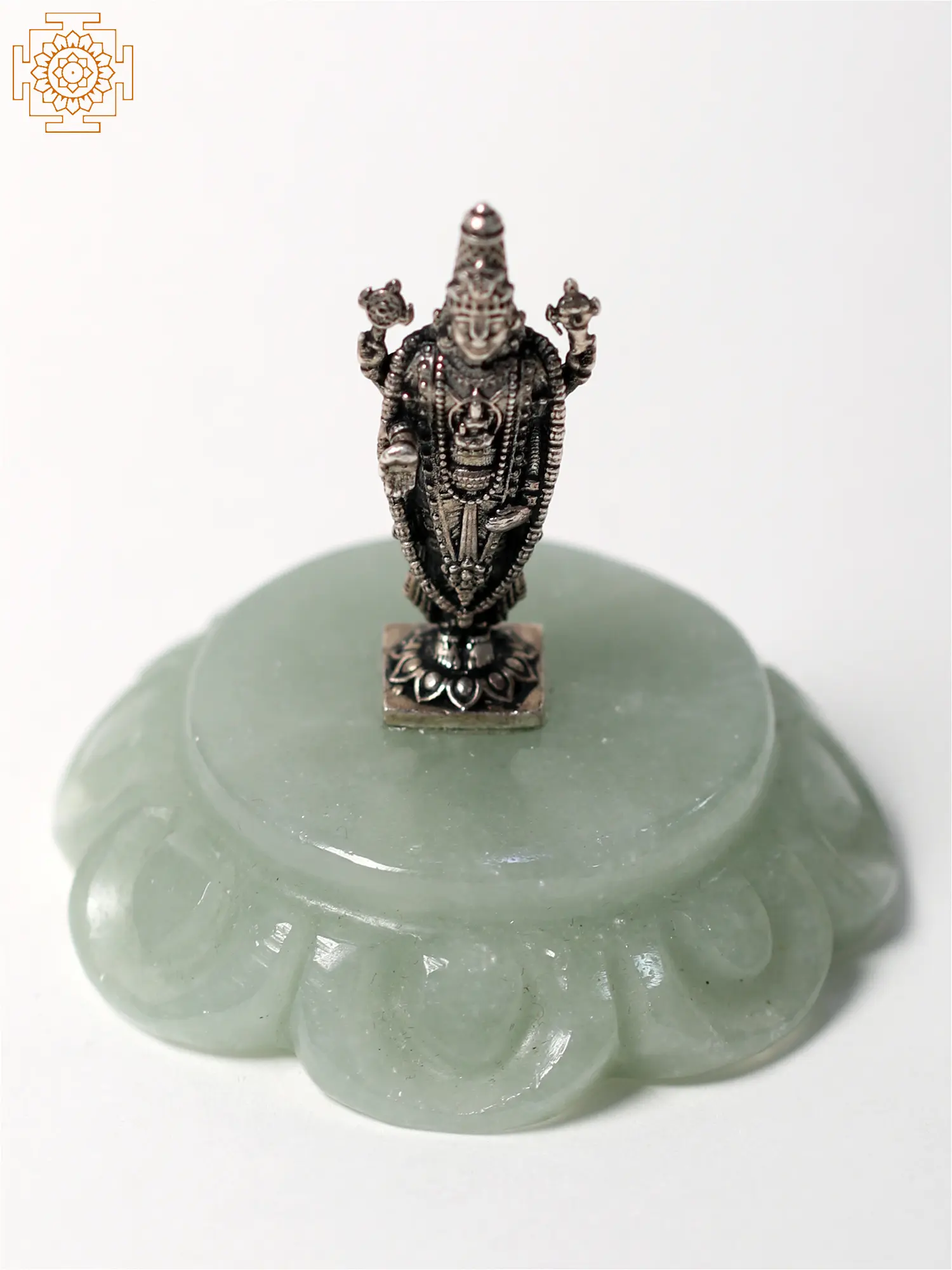 2" Small Natural Aventurine Stone Base With Silver Balaji Statue