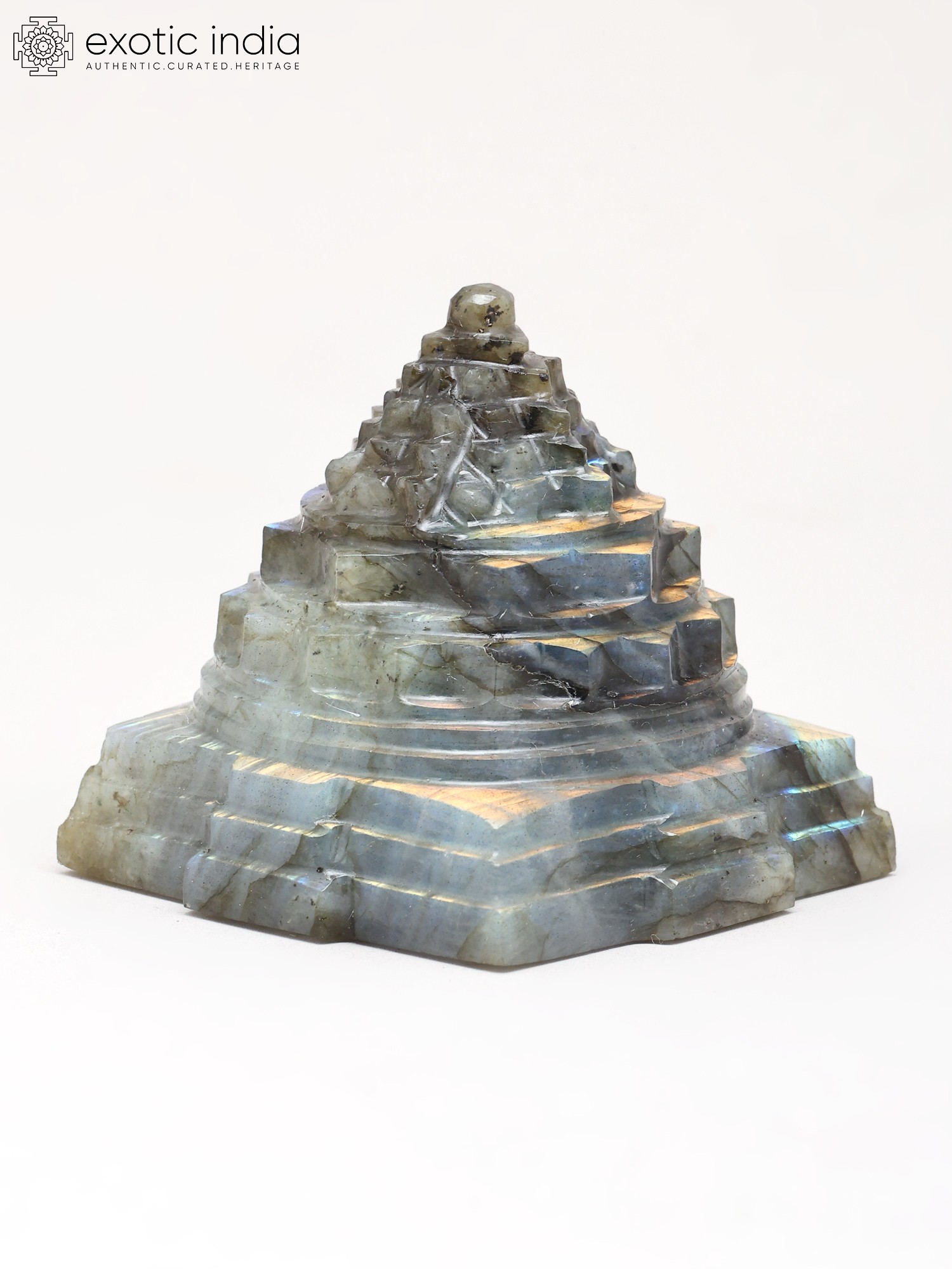 This sacred geometric form is meticulously carved from genuine Labradorite gemstone, chosen for its ethereal shimmer and mystical properties. Each intricate step and facet is rendered with exceptional precision by skilled artisans, honoring centuries of traditional craftsmanship. You'll appreciate the substantial feel and the subtle play of light across the stone's surface, a testament to its quality and the care taken in its creation.