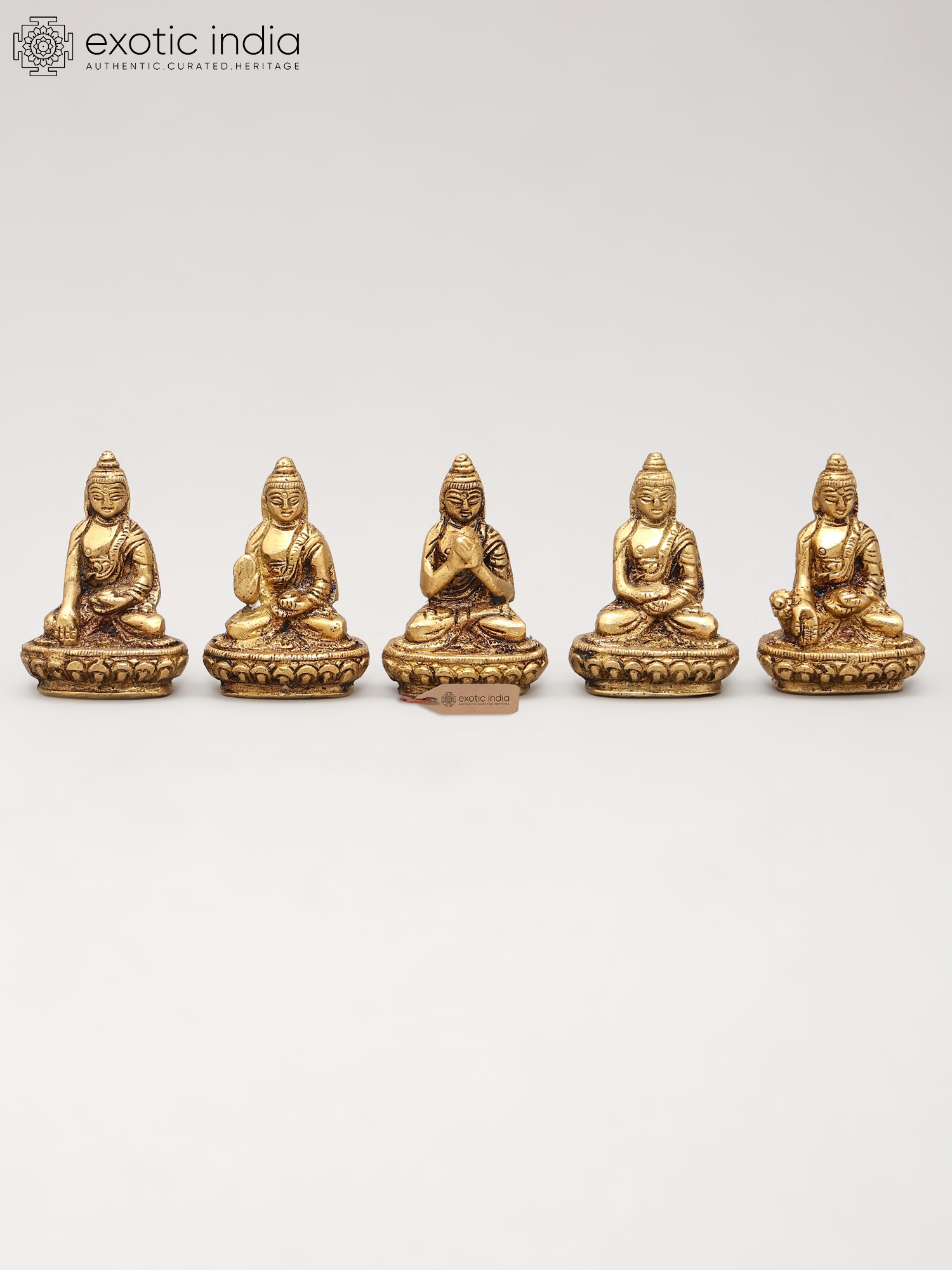 3" Set of Five Dhyani Buddhas | Brass Statues