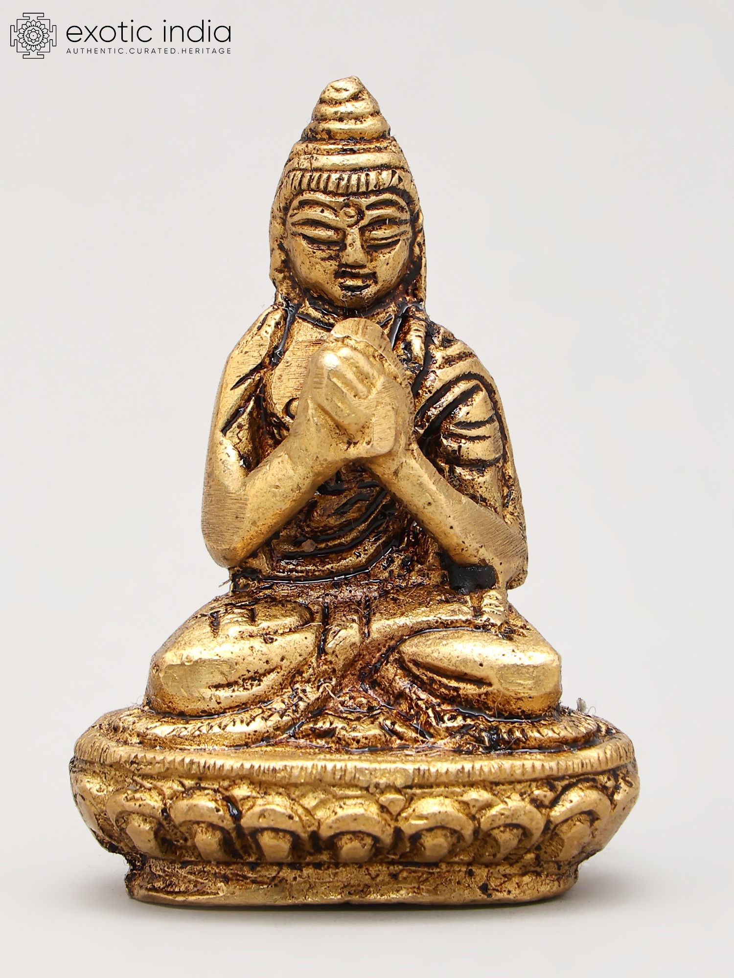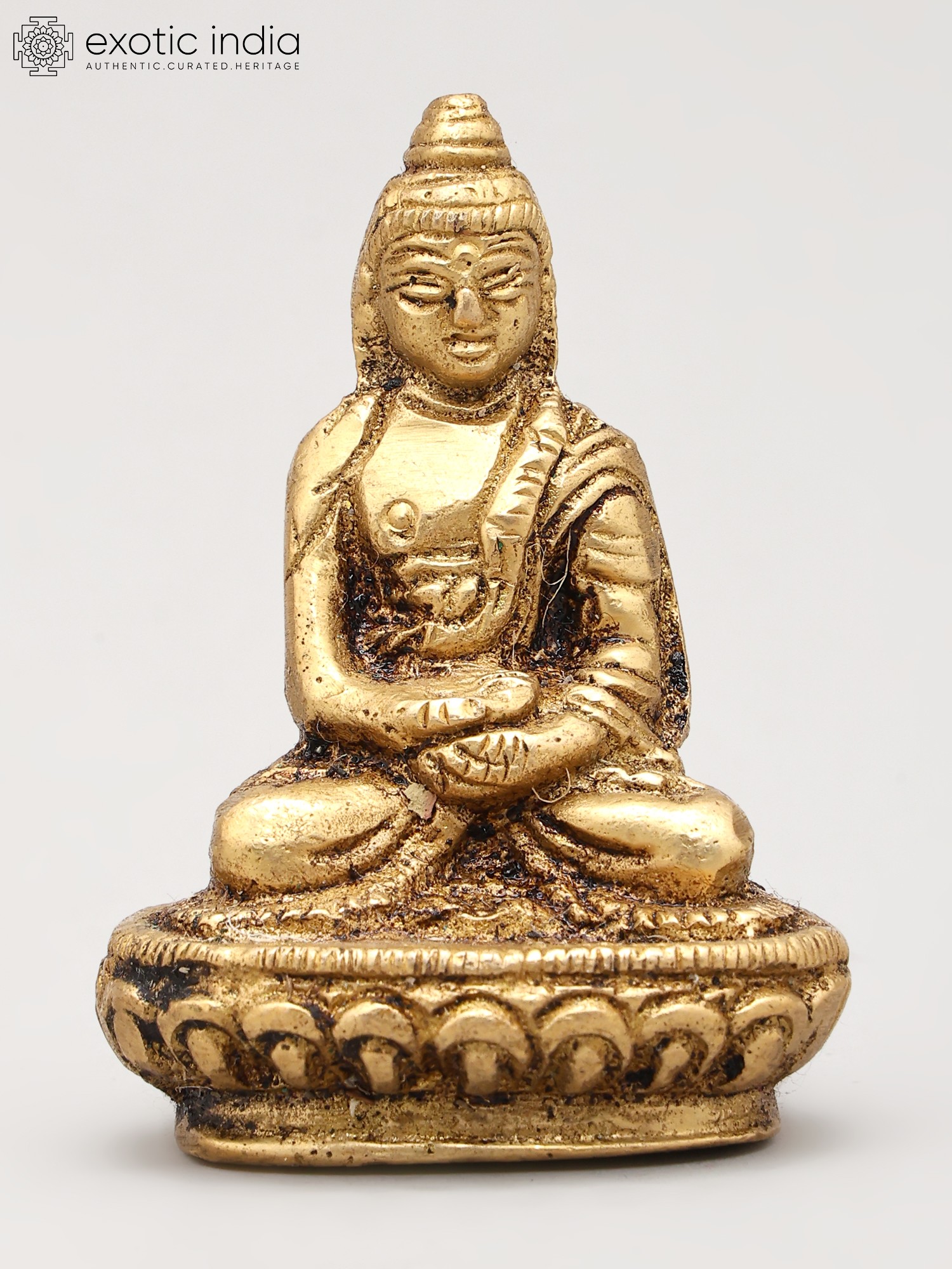 These miniature masterpieces are cast in brass, a material revered in many Eastern cultures for its durability, perceived auspiciousness, and ability to hold intricate detail. The warm, burnished finish of the brass enhances the contemplative aura of the figures, making them not just decorative objects but also conduits of spiritual energy. Each statue rests upon a beautifully rendered lotus base, the lotus being a potent symbol in Buddhism, representing purity, spiritual awakening, and the unfolding of enlightenment from muddy waters. The craftsmanship evident in the delicate features and flowing robes speaks to the dedication of artisans who imbue their work with respect for the sacred subject matter.