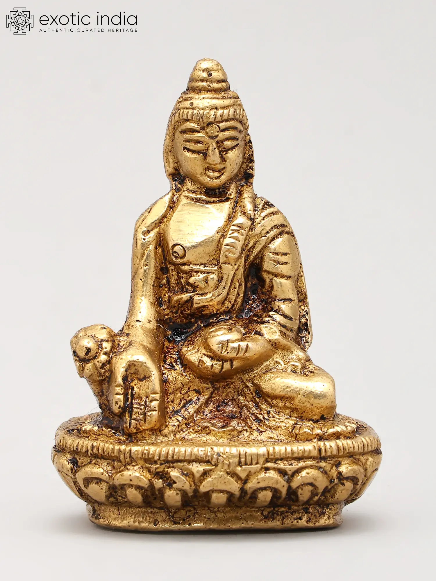 10" Sitting Lord Buddha in Different Mudras - Abhay Mudra, Bhumisparsha Mudra, Dhyan Mudra and Medicine Buddha | Set of Four Brass Statues