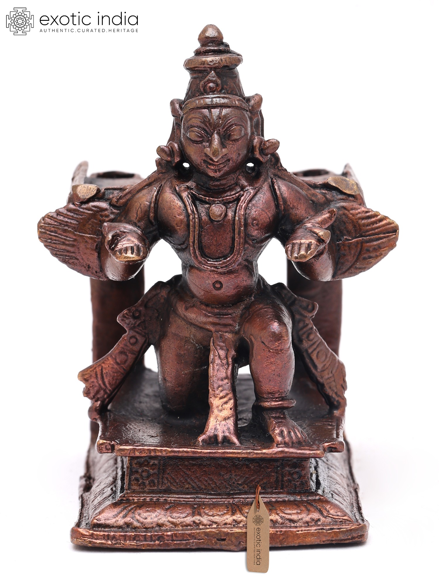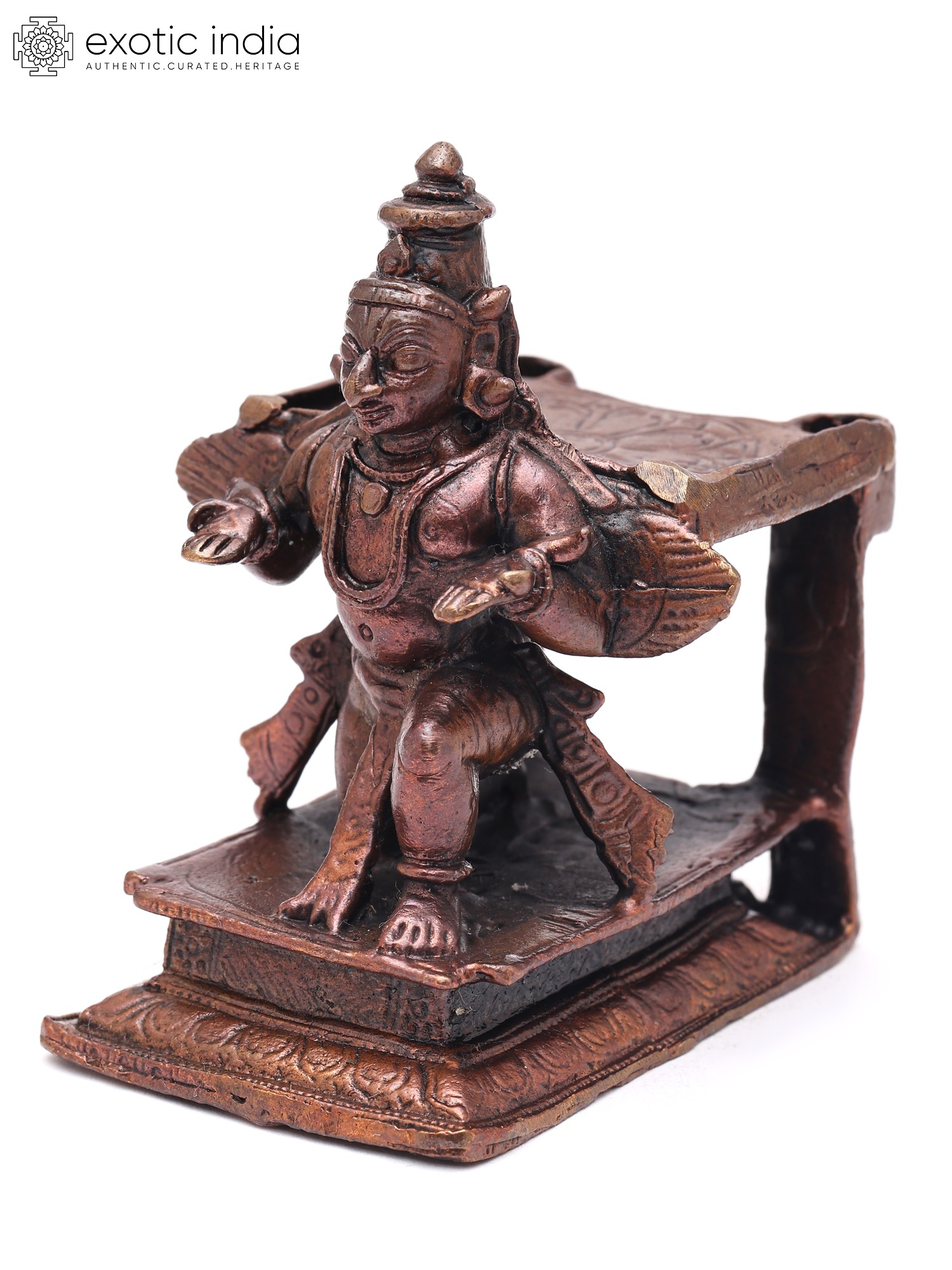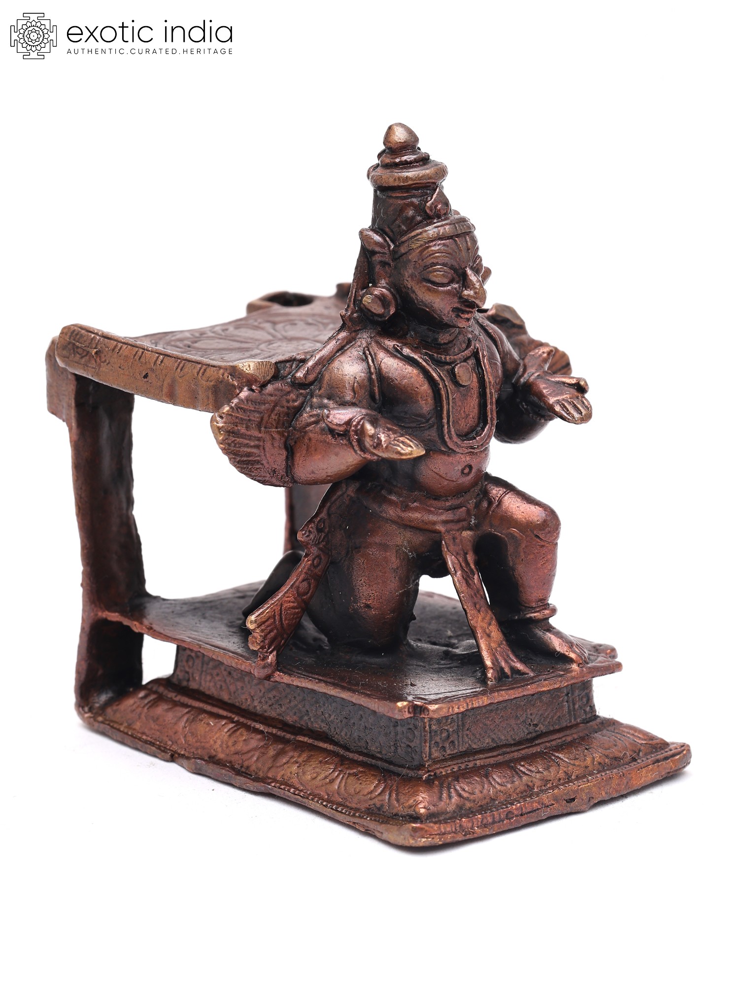 Invite a powerful presence into your space with this exquisite copper representation of Garuda, the divine mount of Lord Vishnu. Its compact form makes it a perfect accent piece, radiating spiritual energy and artistic mastery wherever it resides.