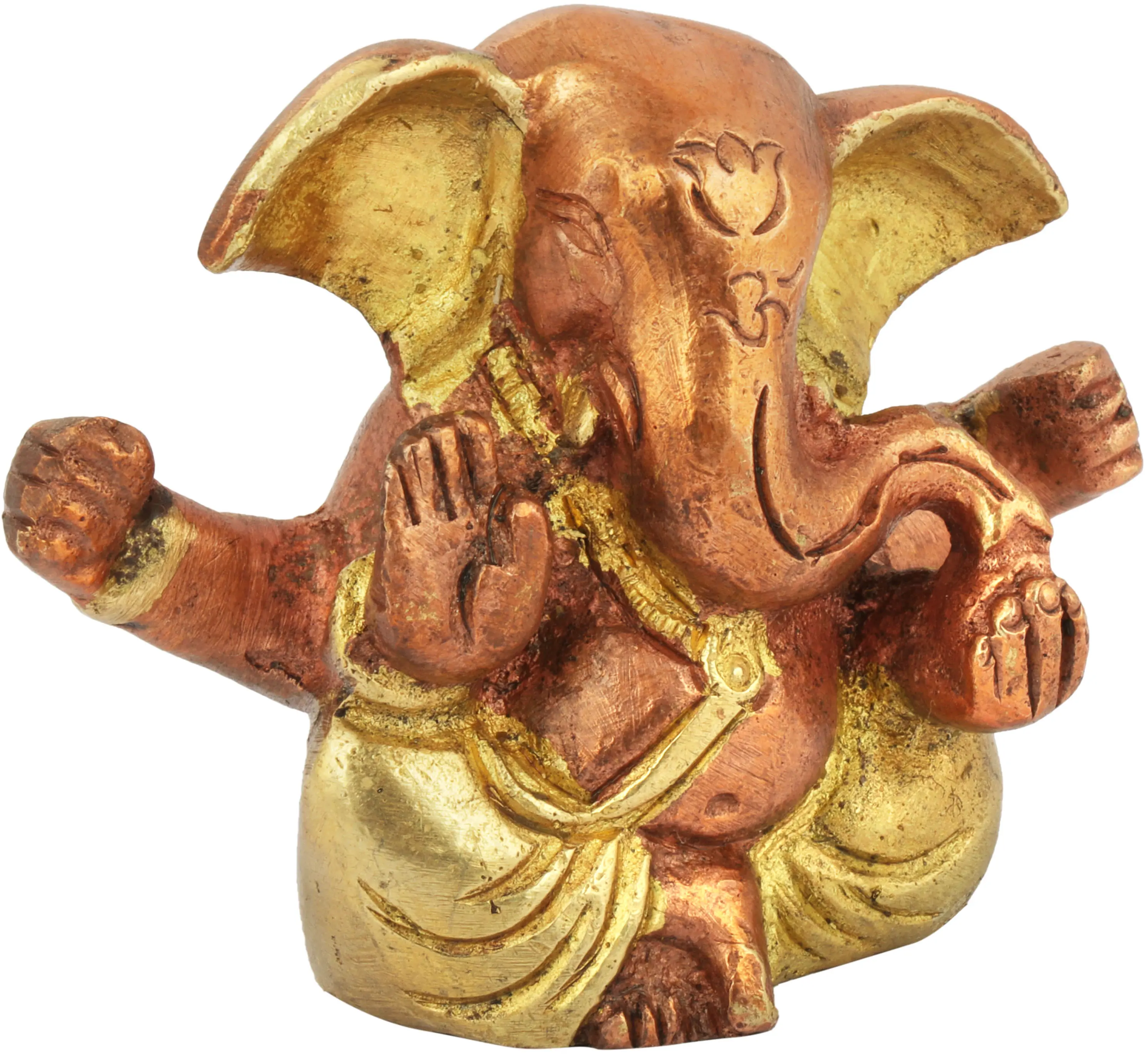 Baby Ganesha, also known as Bal Ganesha or Bala Ganapati, is depicted as an adorable and playful child. In a gesture of fearlessness, his right hand is in the Abhaya Mudra, assuring devotees of protection and blessings. Lovingly holding a Modak, a sweet treat symbolizing divine wisdom, in his left hand, he entices hearts with his playful innocence. His clenched hands signify his ability to conquer challenges and lead devotees towards success and prosperity. His large trunk, known as “Vakratunda”, signifies Ganesha’s ability to clear life’s hindrances. Crafted in Brass, this adorable artwork radiates positivity and protection, bringing blessings and prosperity to any space.