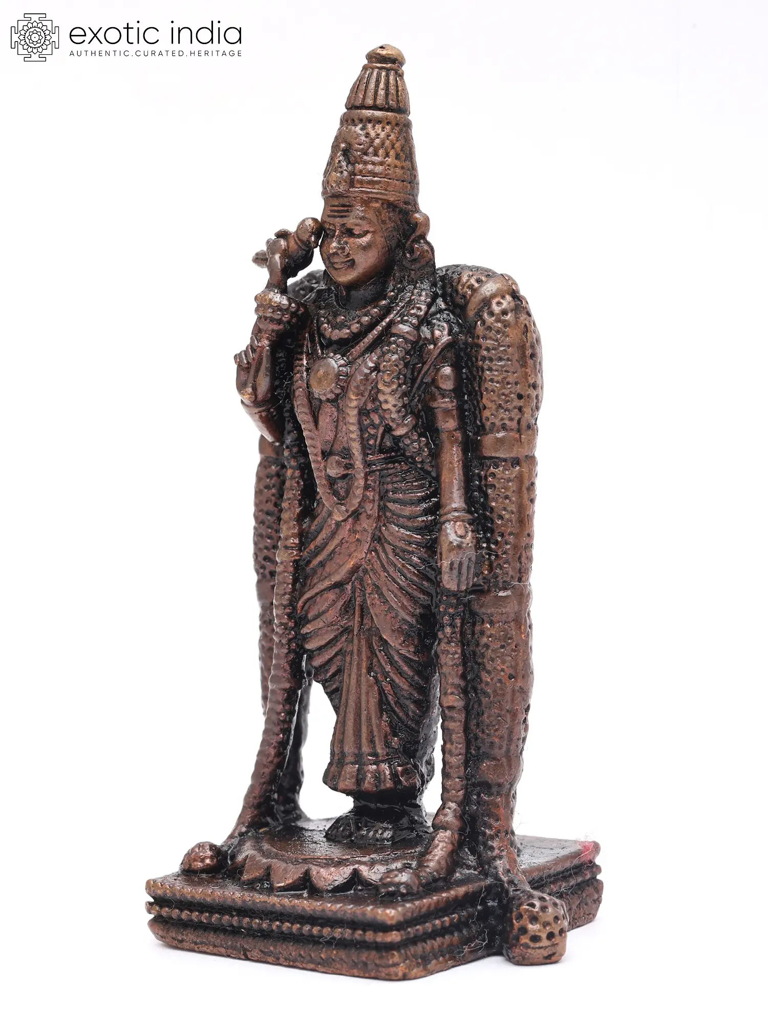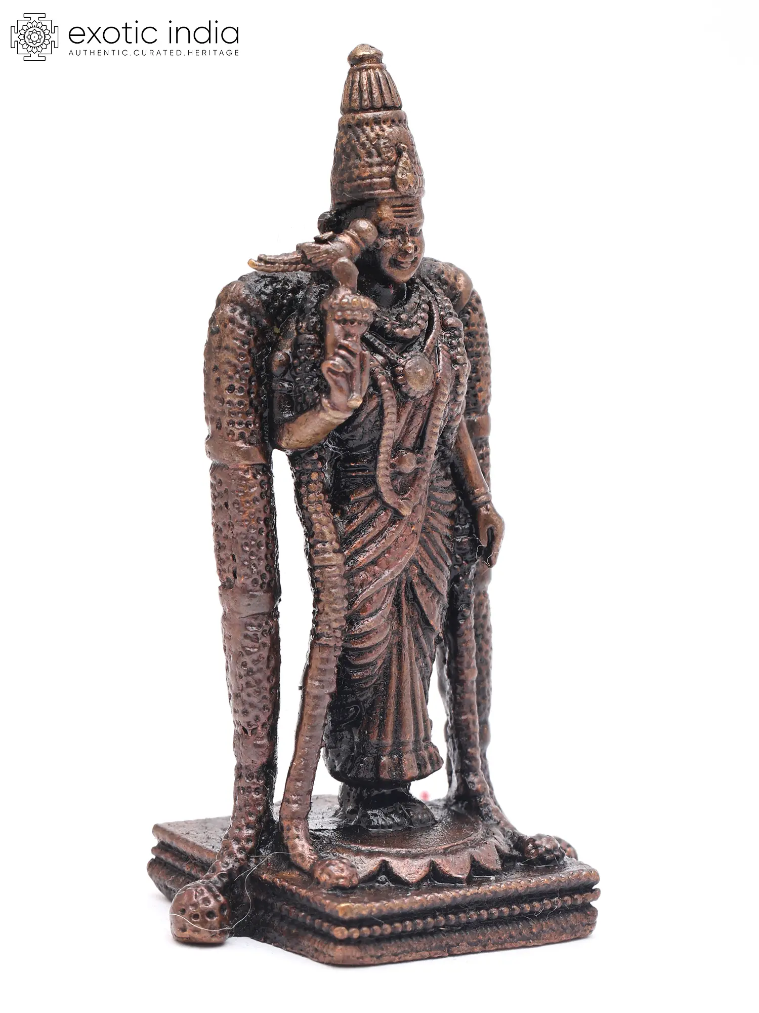 3" Small Goddess Meenakshi Standing on Pedestal - Form of Goddess Parvati | Copper Statue | Made in India