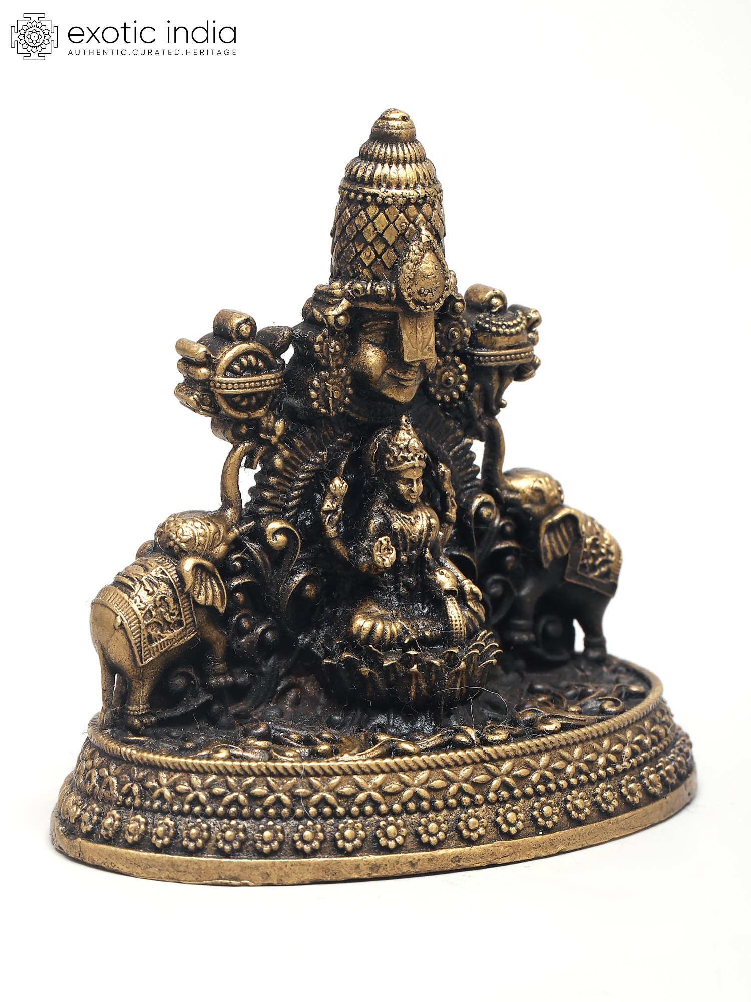 5" Small Brass Beautiful Diya of Tirupatibalaji and Goddess Lakshmi