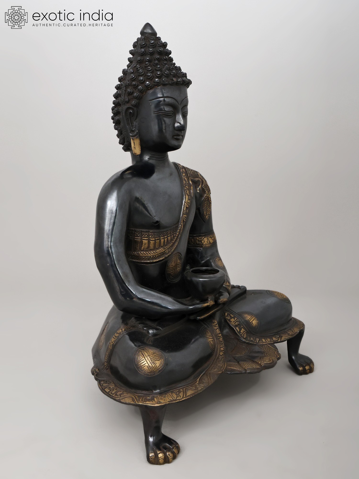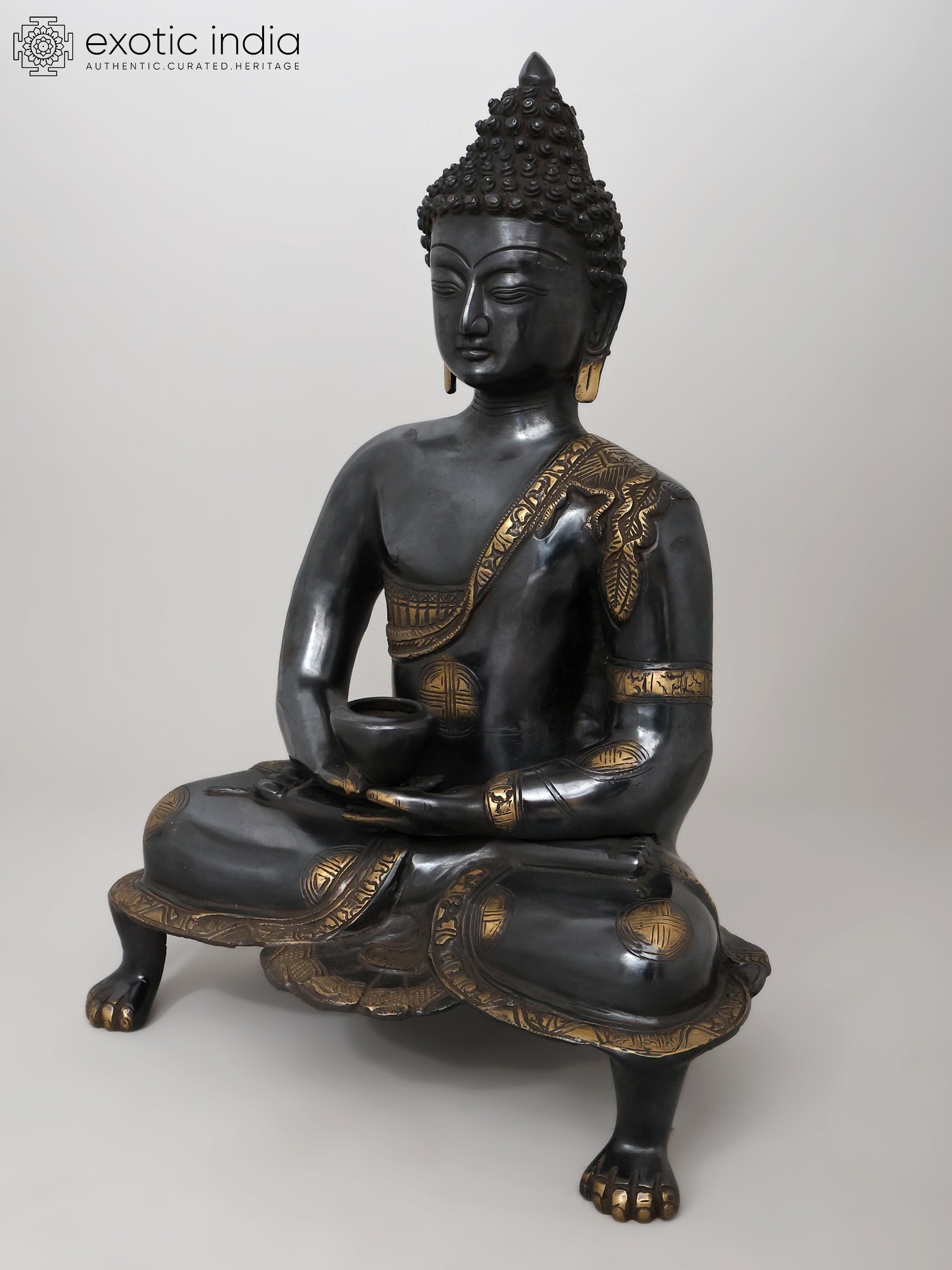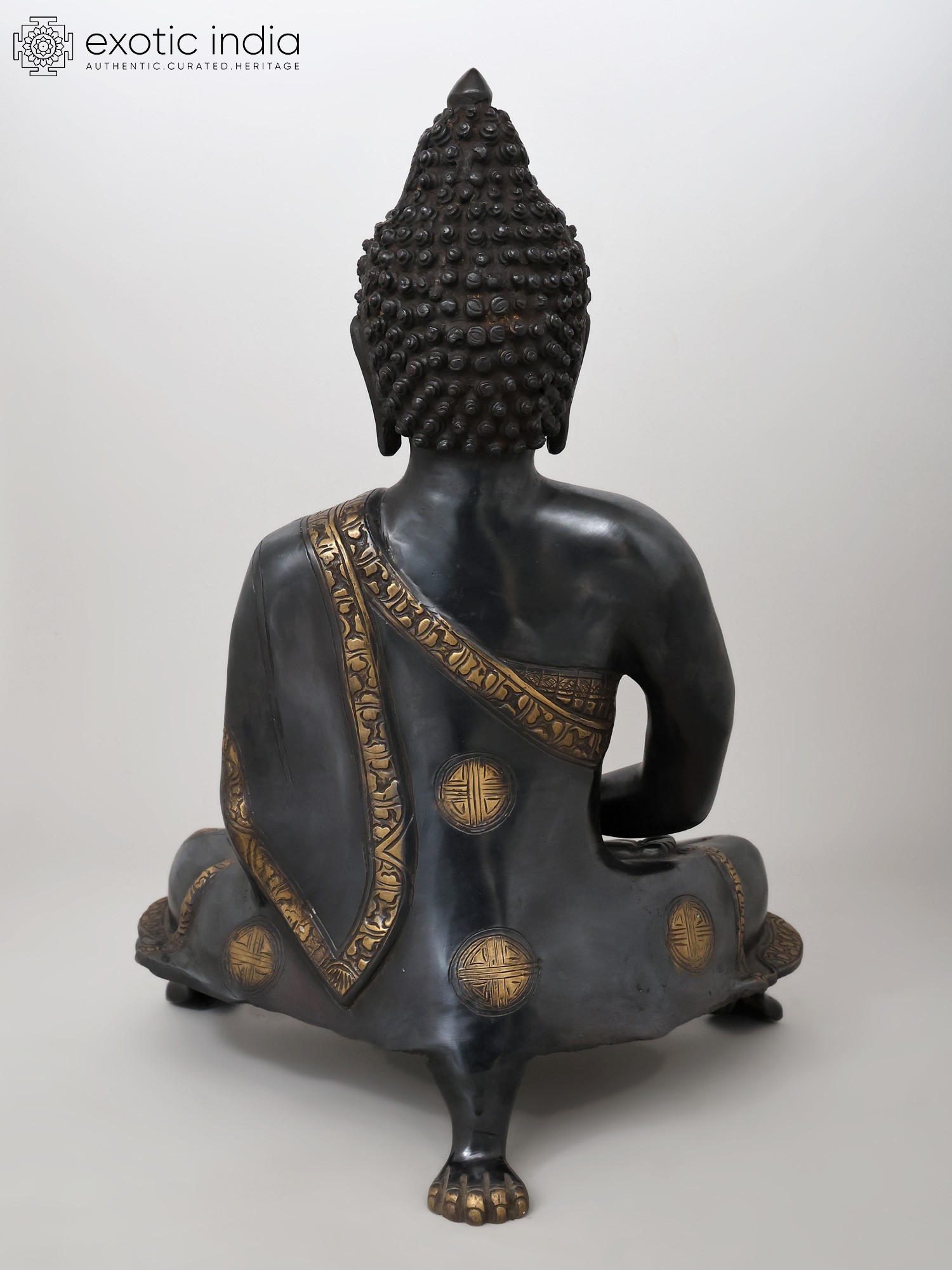 20" Black Buddha in Dhyana Mudra - (Robes Decorated with Scenes from the Life of Buddha) In Brass | Handmade | Made In India