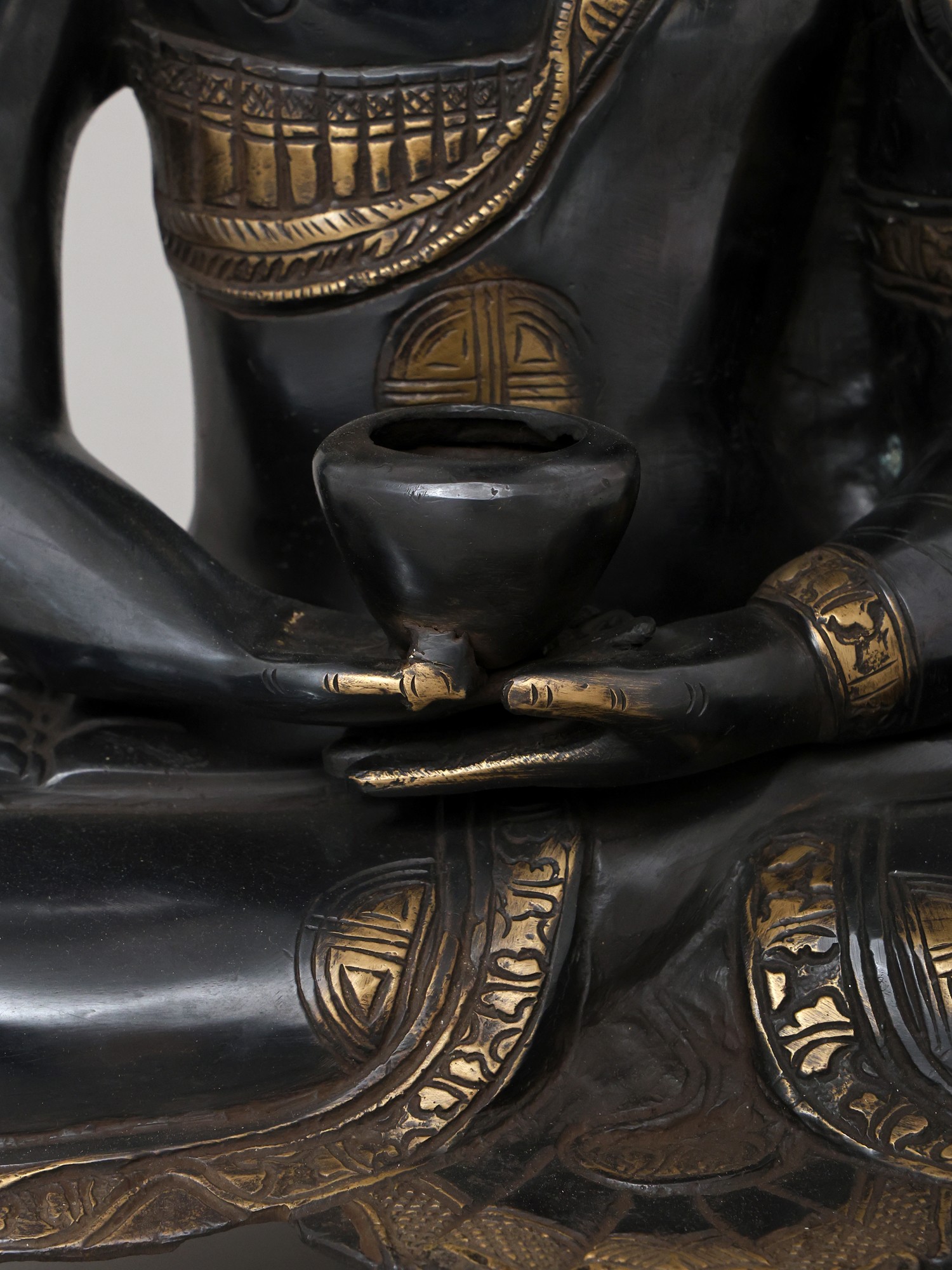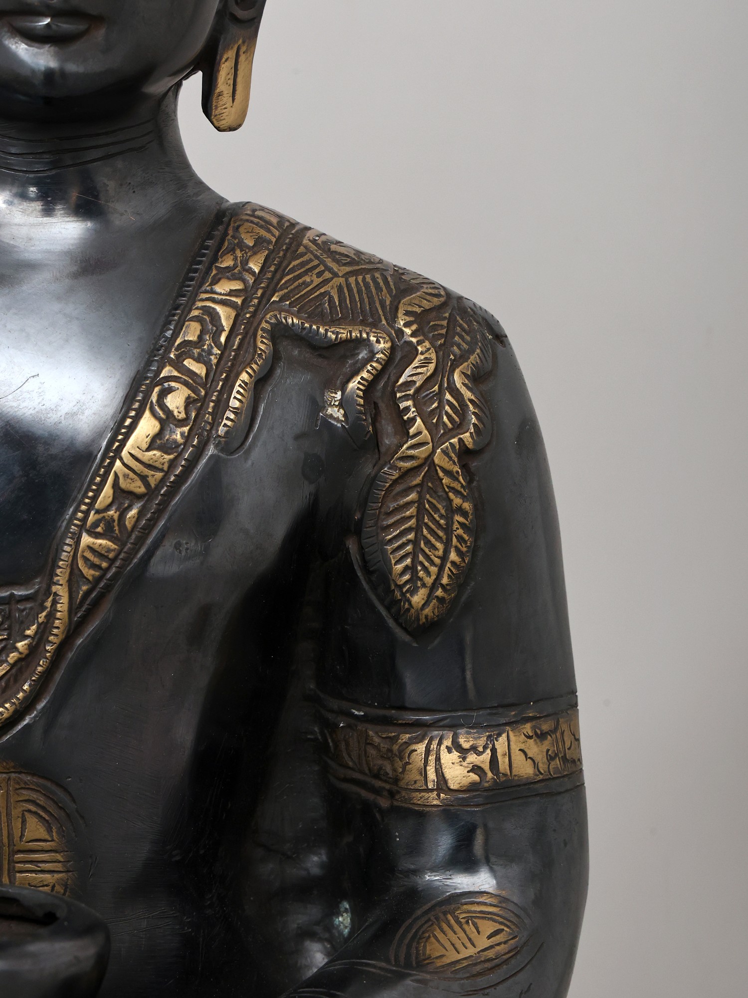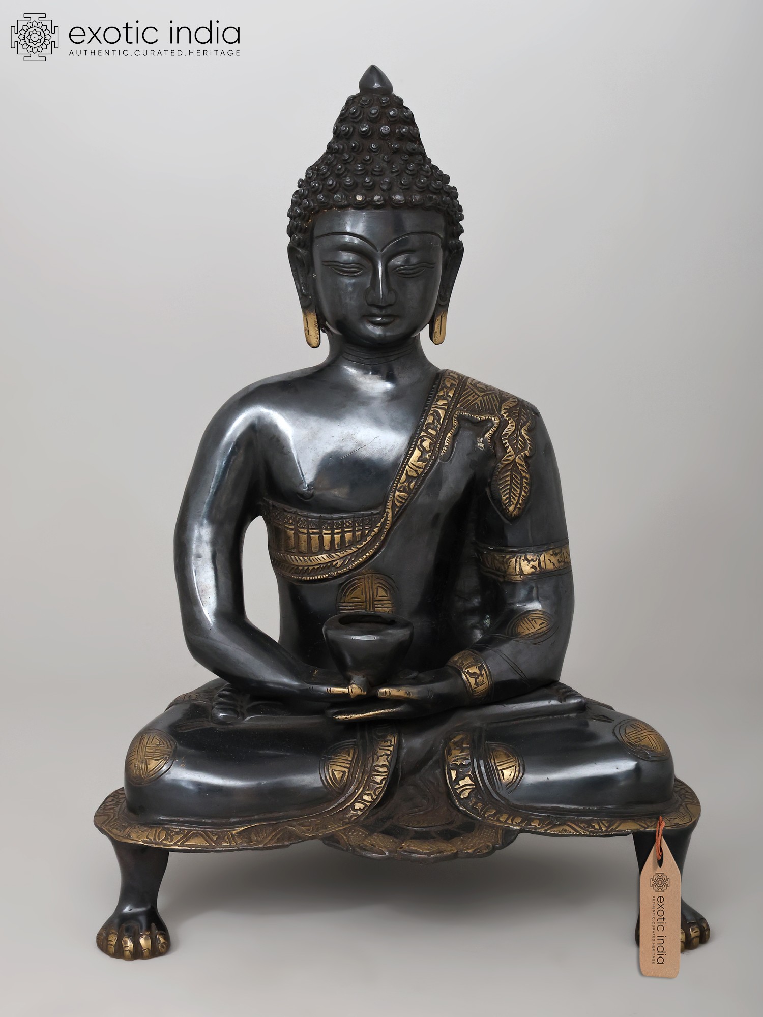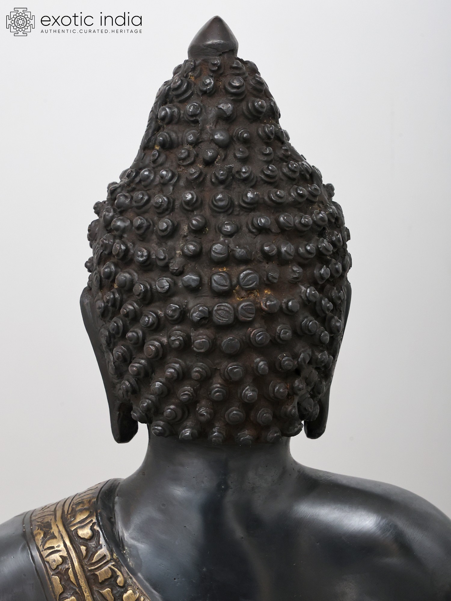 20" Black Buddha in Dhyana Mudra - (Robes Decorated with Scenes from the Life of Buddha) In Brass | Handmade | Made In India