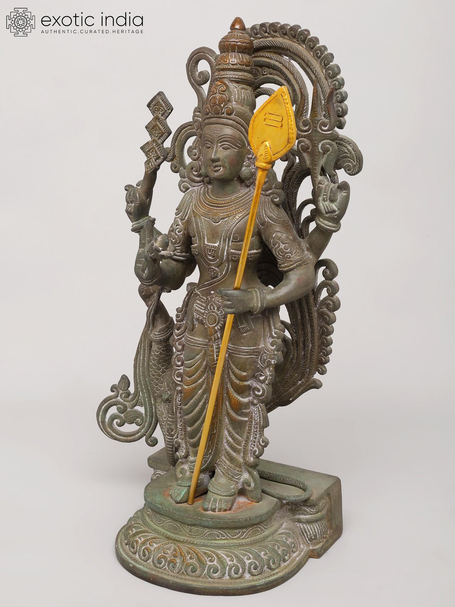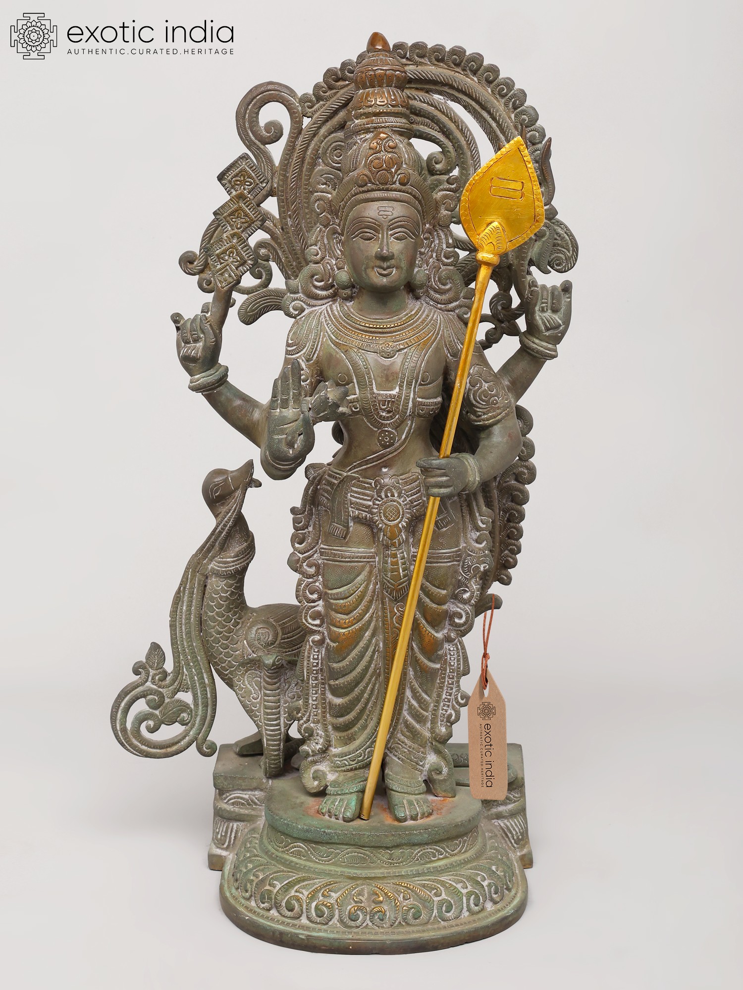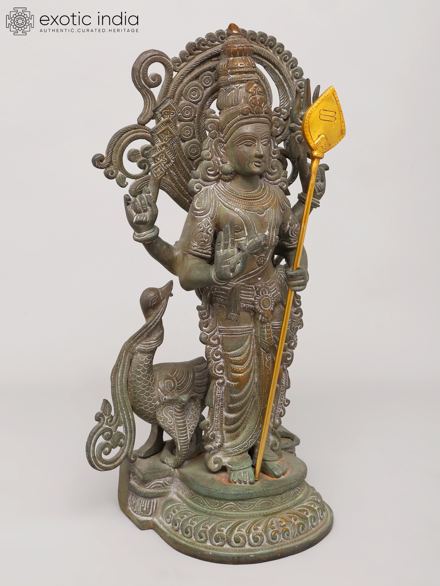 10" Lord Murugan Standing on Kirtimukha Throne | Brass Statue