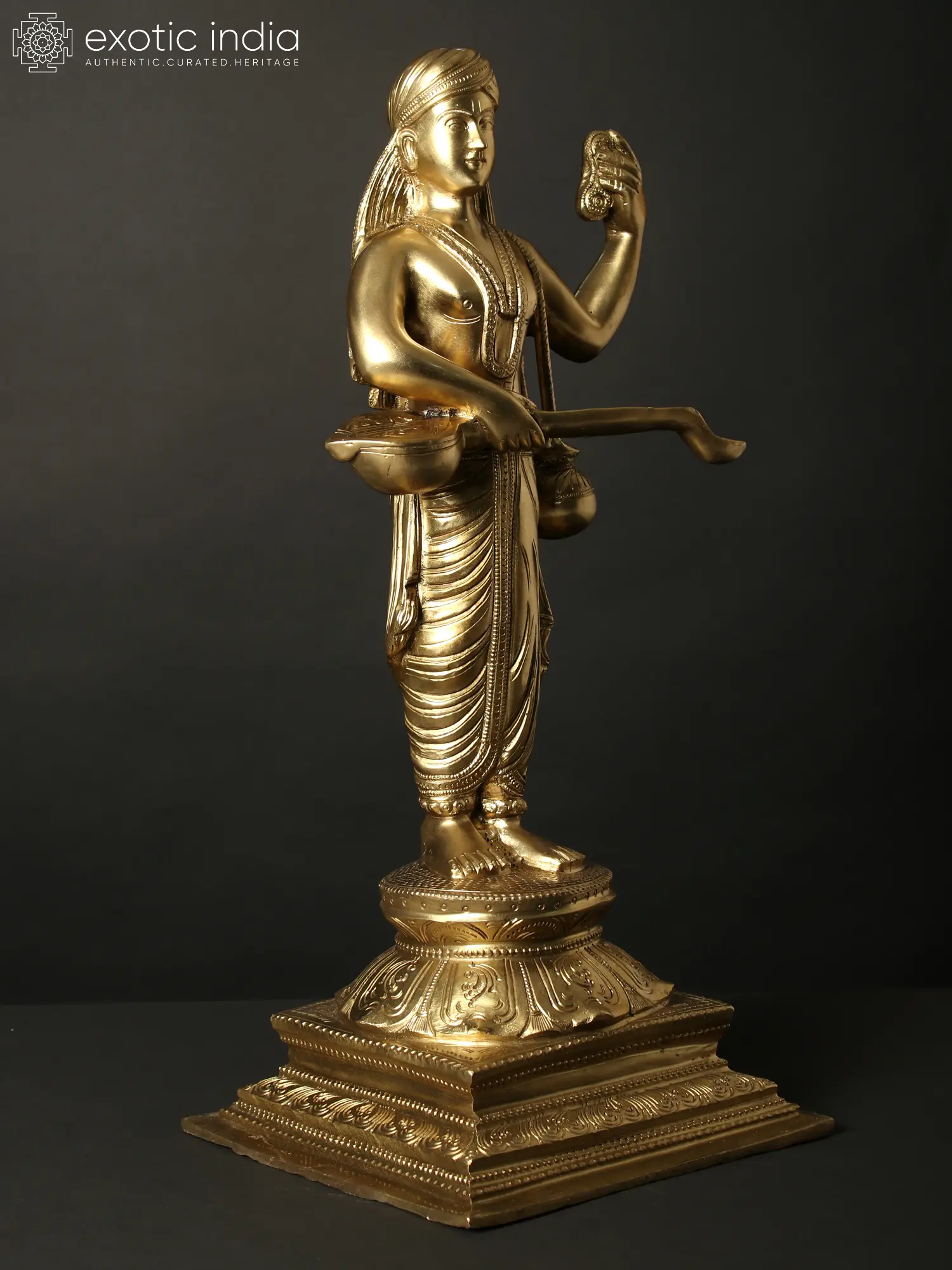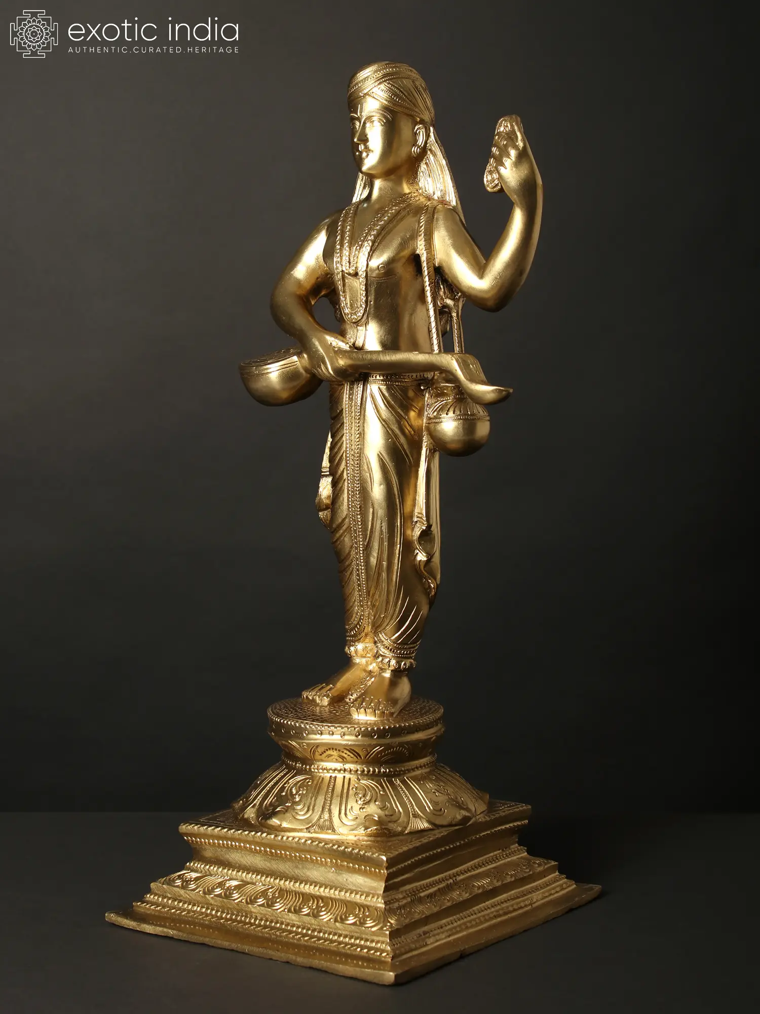 The divine devotee of Vishnu, Devarishi Narada is presented in this unique bronze statue, glowing from within.