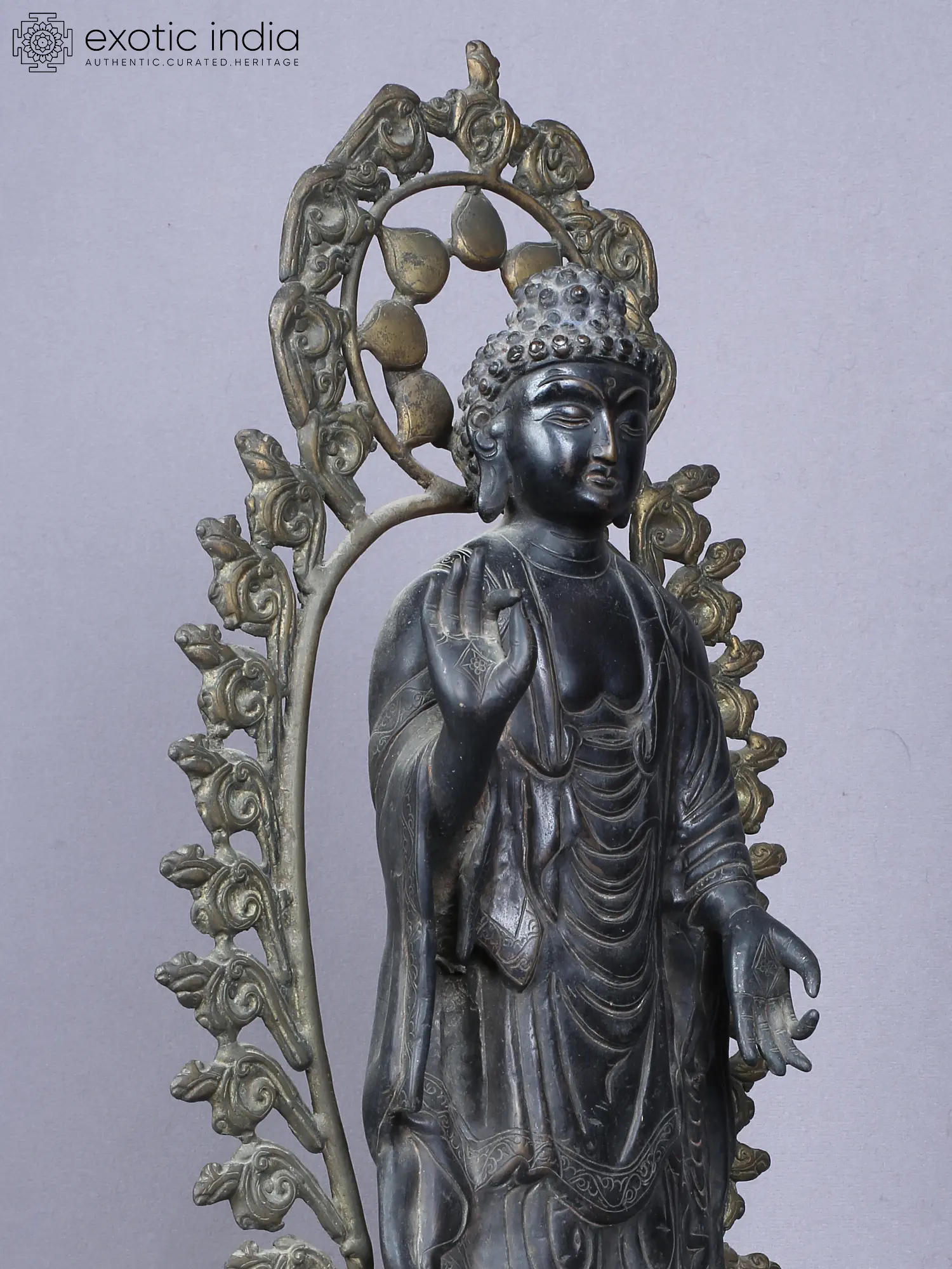 21" Standing Buddha (with Inlay Work) In Brass | Handmade | Made In India