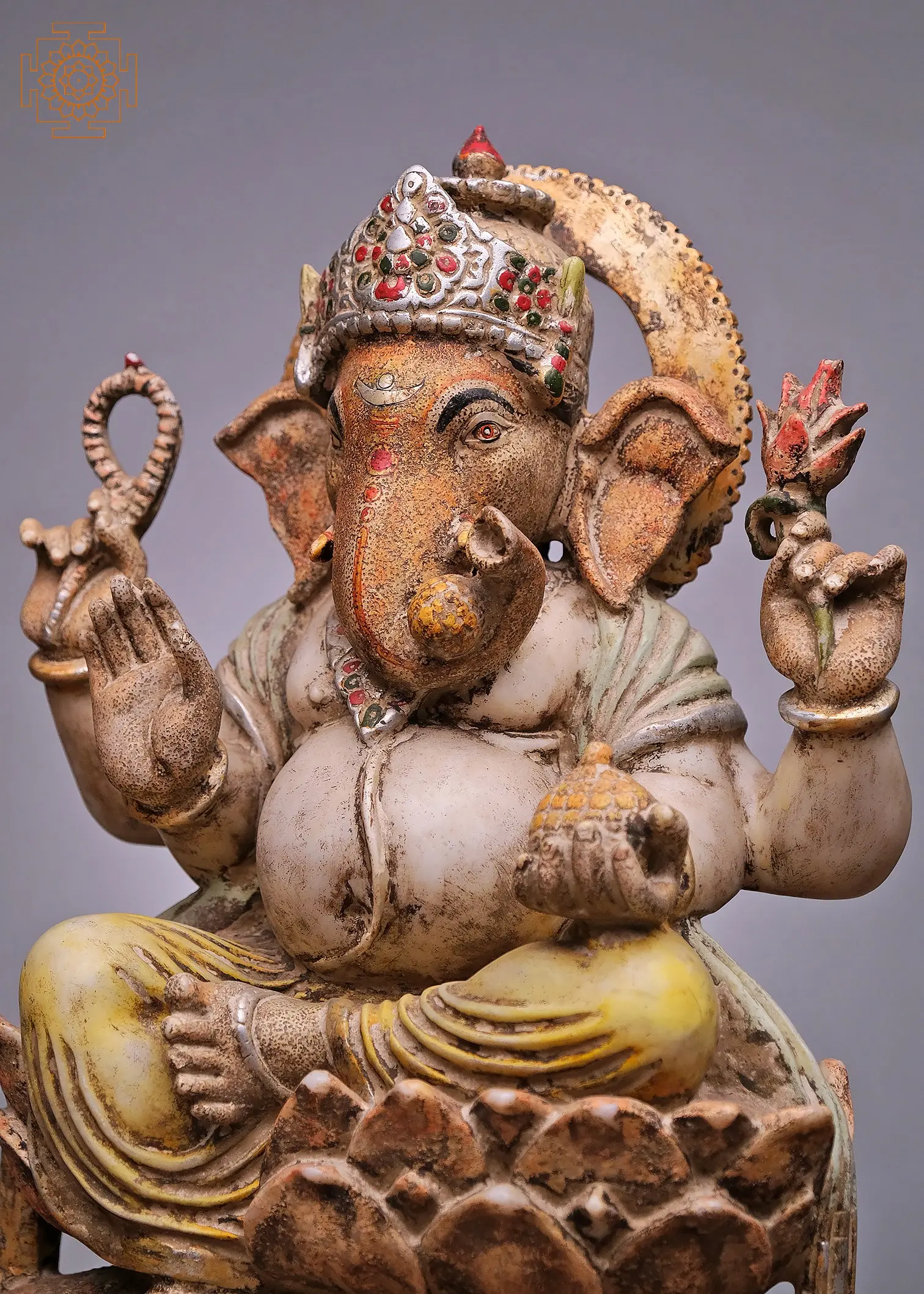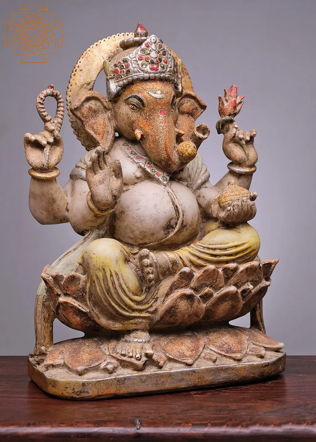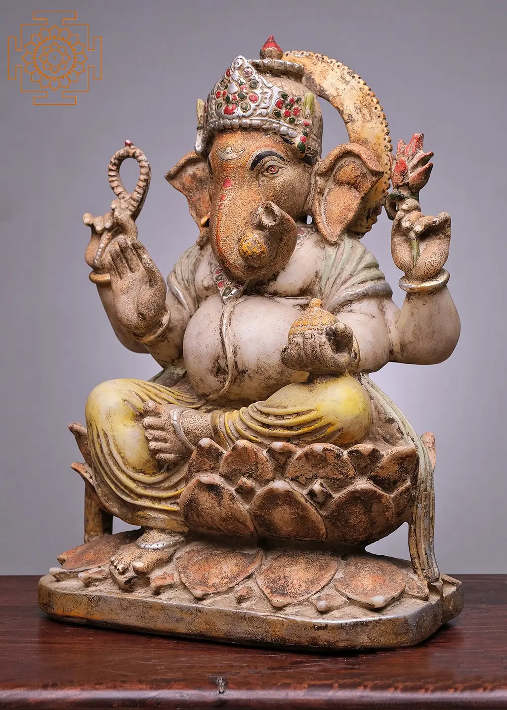 20" Lord Ganesha Seated on Lotus | Handmade | Marble Ganesha Statue | Ganpati Statue | Vinayak Padma Deity