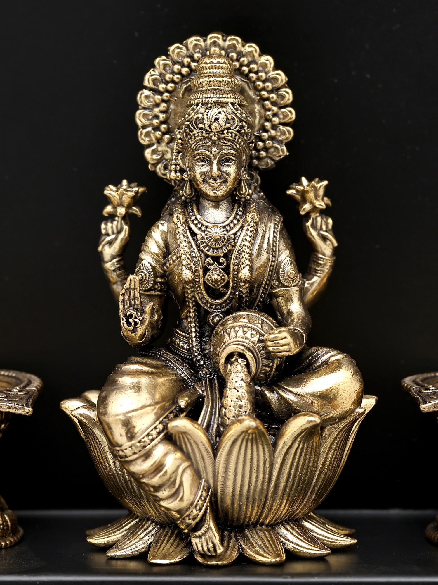 15" Ashtalakshmi Lamp In Brass | Handmade | Made In India