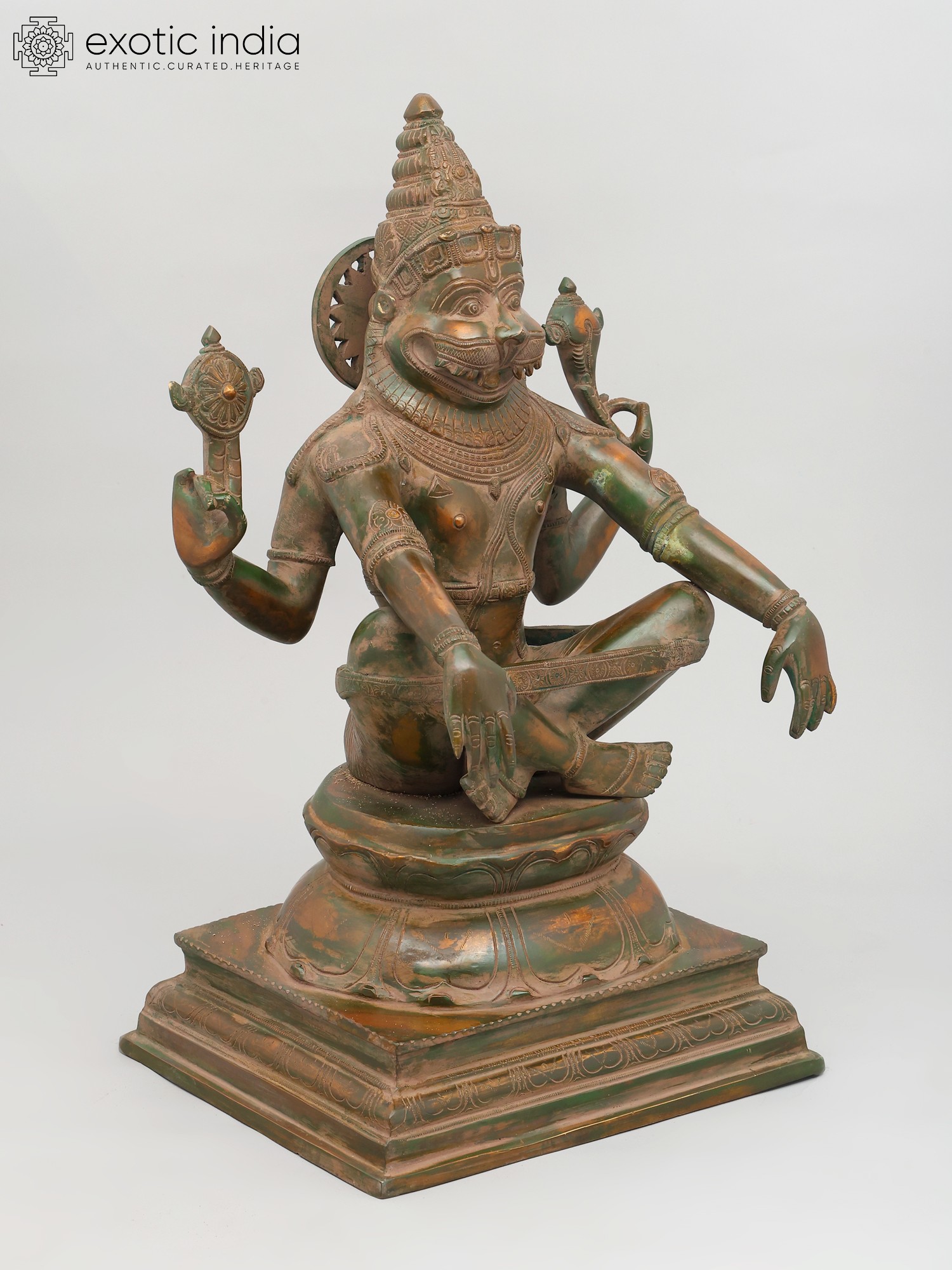 7" Lord Narasimha with Goddess Lakshmi In Brass | Handmade | Made In India