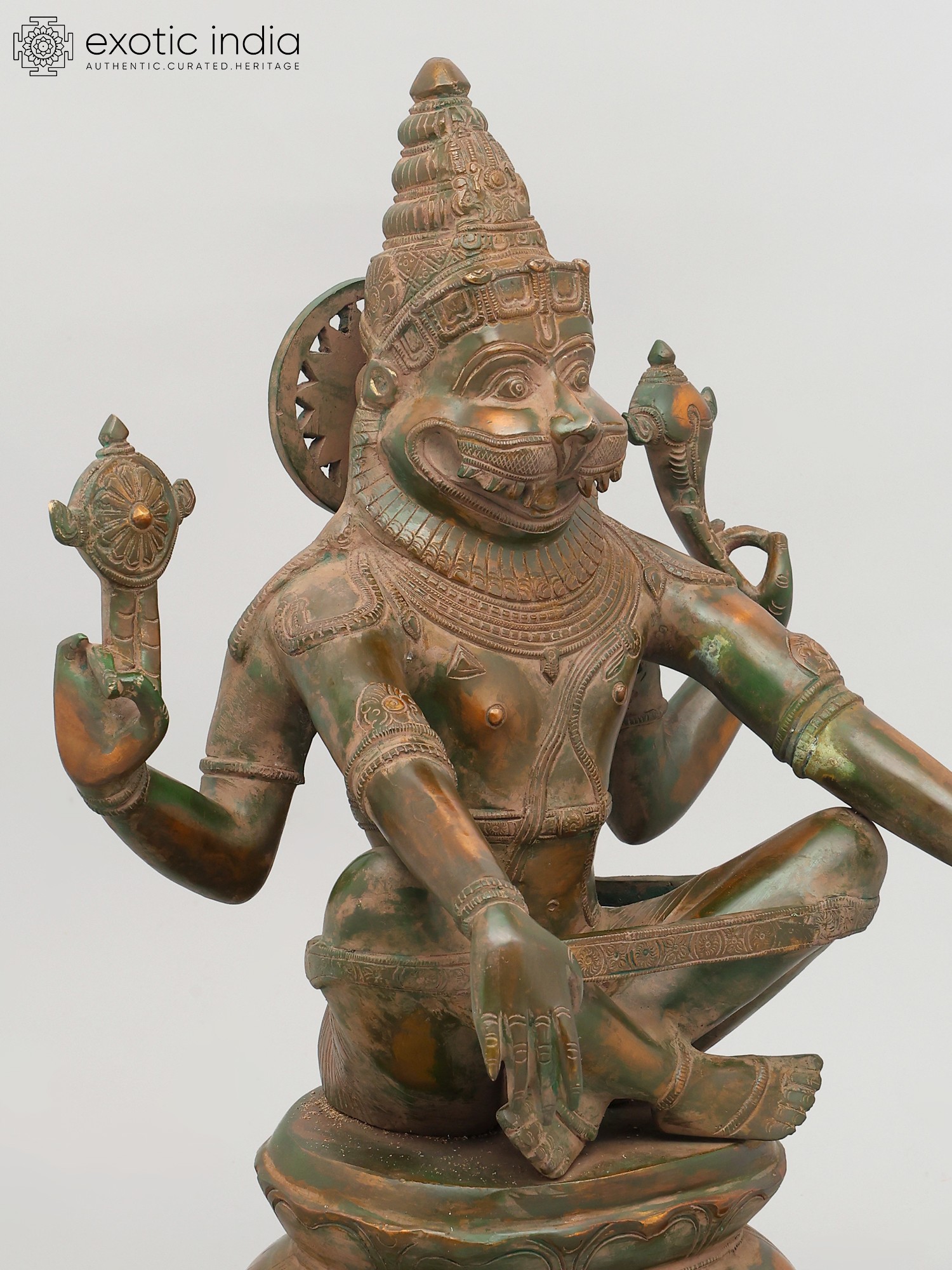 4" Small Superfine Sitting Lord Narasimha with Devi Laksmi | Brass Statue
