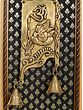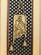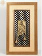 Representing auspiciousness in the form of a brass and wood wall hanging with holy Lord Ganesha, Aum, and Diya symbols, and two bells, this piece is an epitome of gain, and tranquilly. The brass panel is elegantly built with butas on a black cloth backdrop. The entire piece is framed in a wooden frame with a basic orange-brown (often referred to as Desert Sand colour) fabric background. The richness of the black and cream fabrics contracts to give this wall hanging a regal aspect while also allowing the spectator to bless their eyes with the auspiciousness of the sacred symbols.