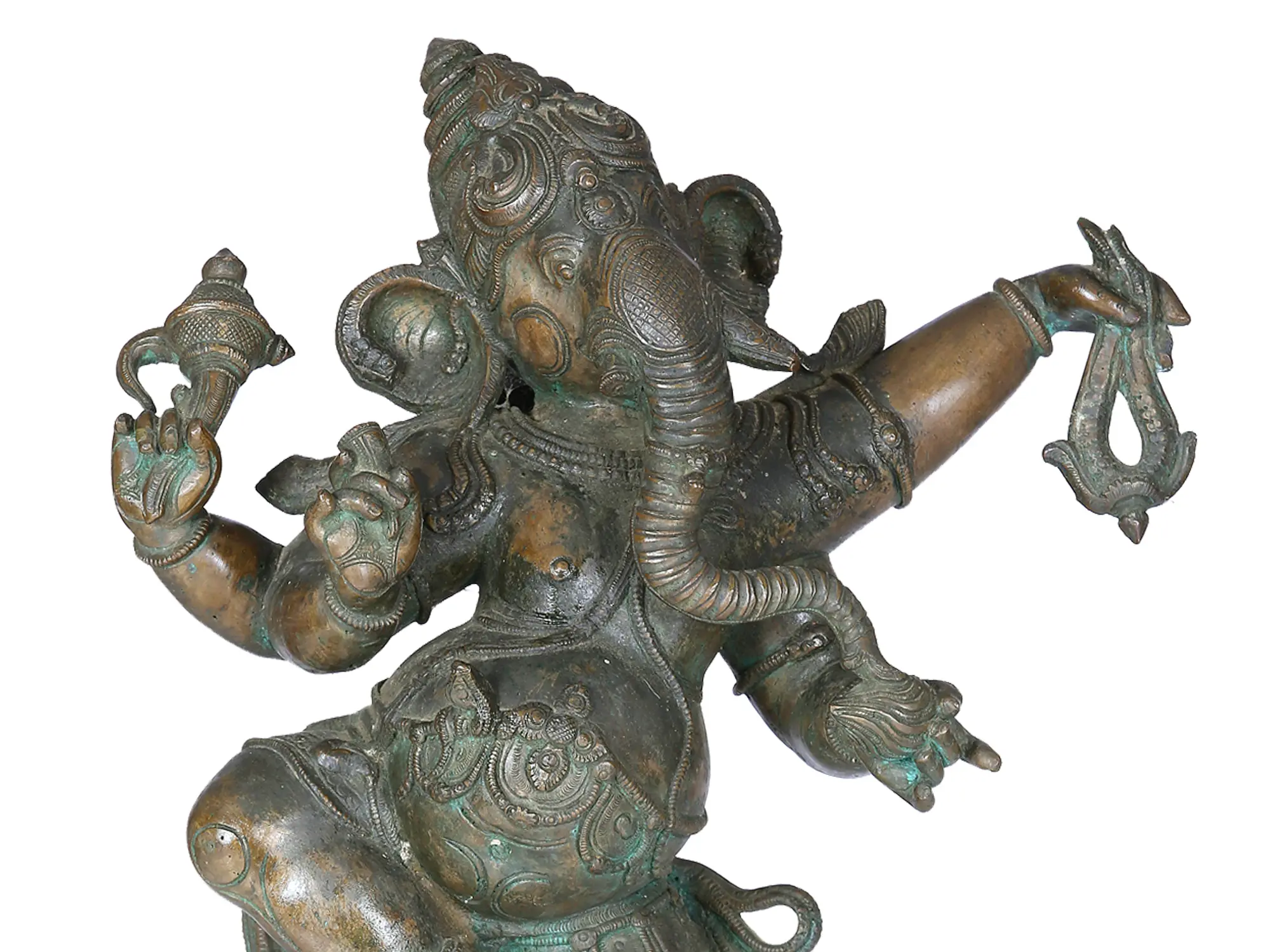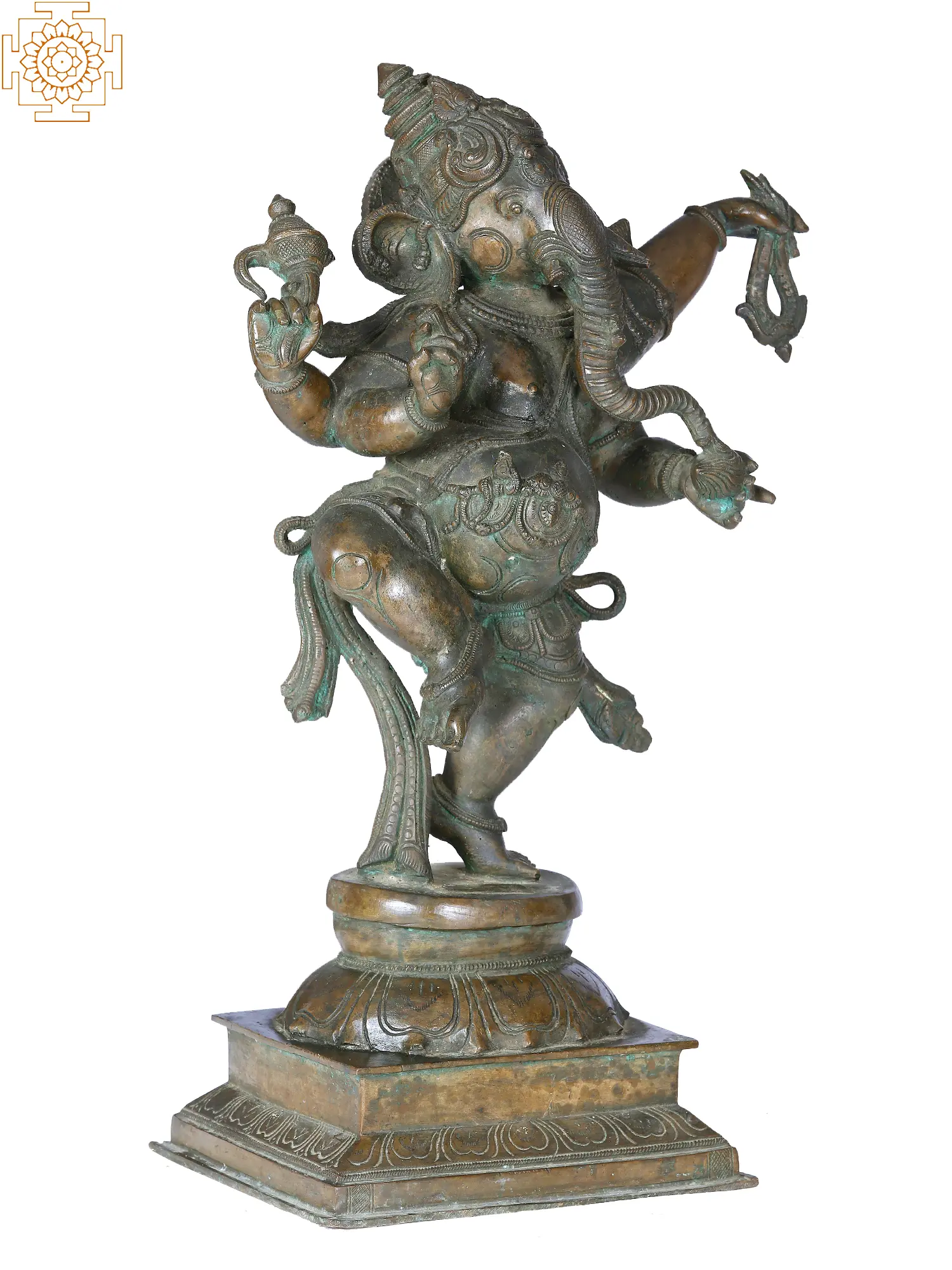 Through this form, Ganesha signifies the harmonious blend of spirituality and artistic expression, inviting his followers to revel in the divine dance of life with unbridled enthusiasm and happiness. This beautiful creation, crafted using the ancient “Madhuchista Vidhana (Lost-Wax) technique”, encourages devotees to embrace the rhythm of existence.