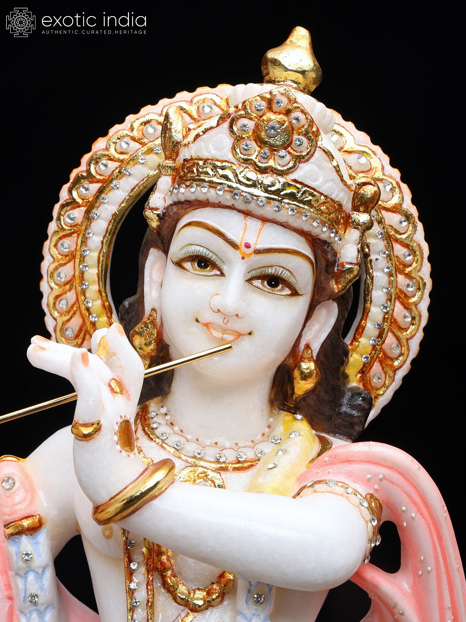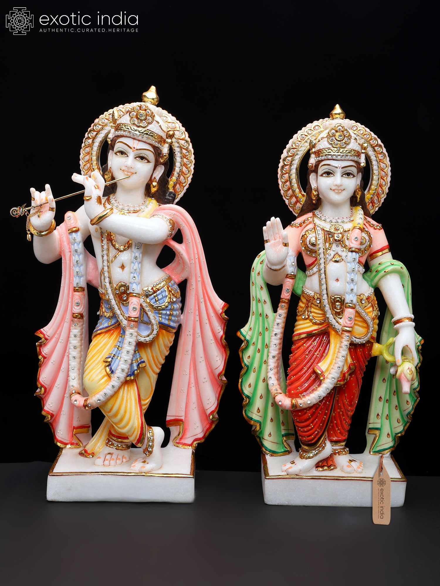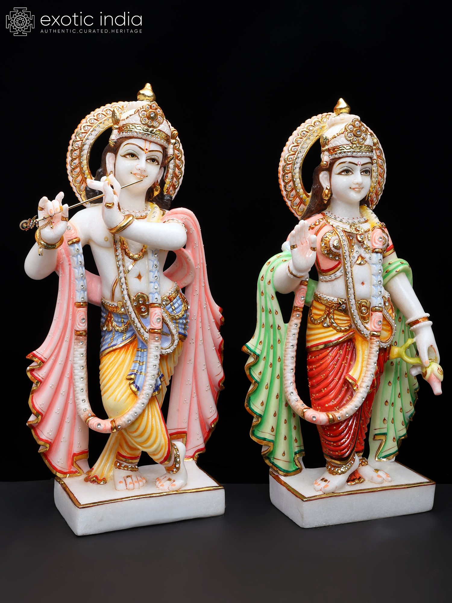 21" Divine Pair of Radha Krishna Marble Statues