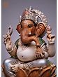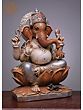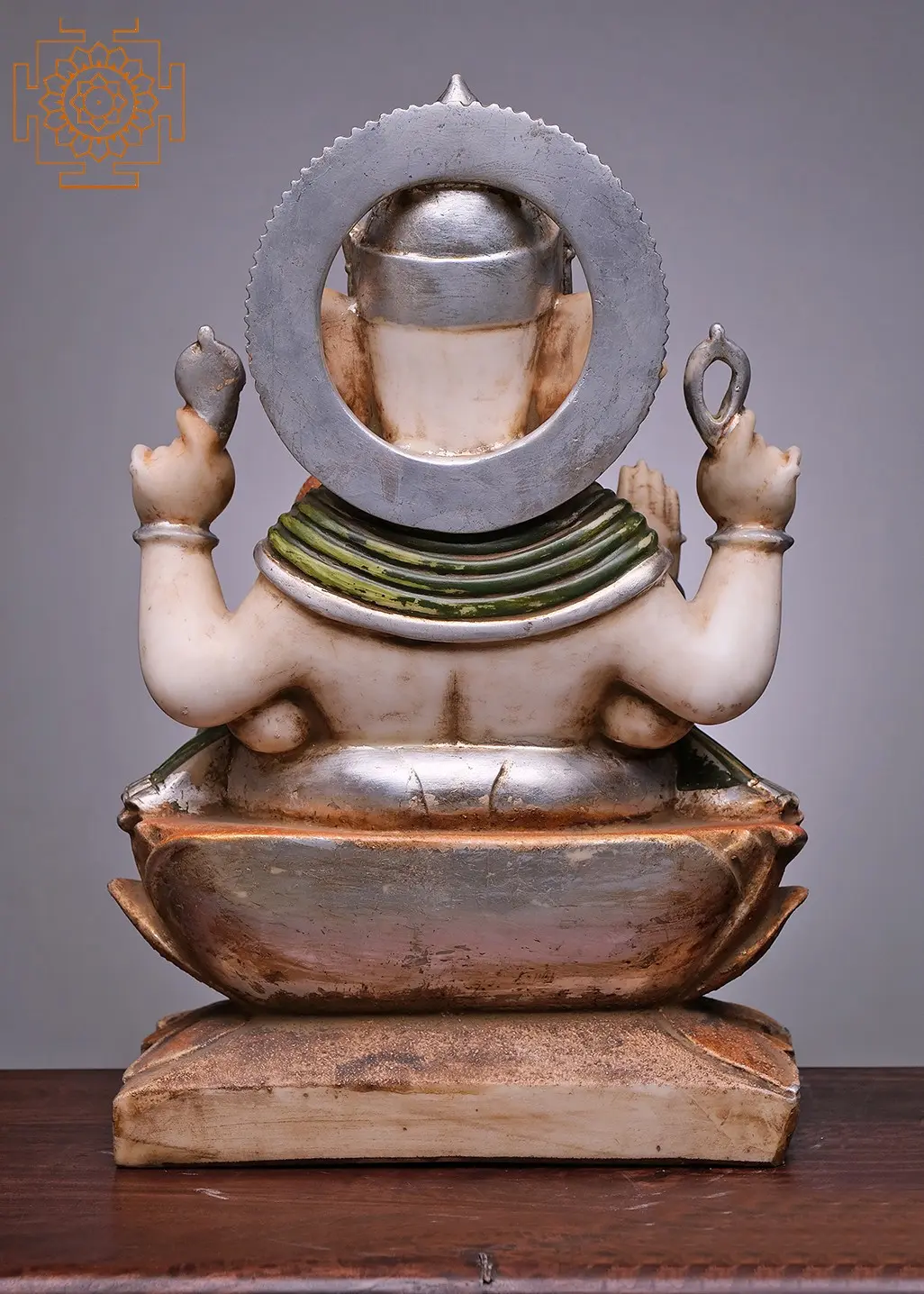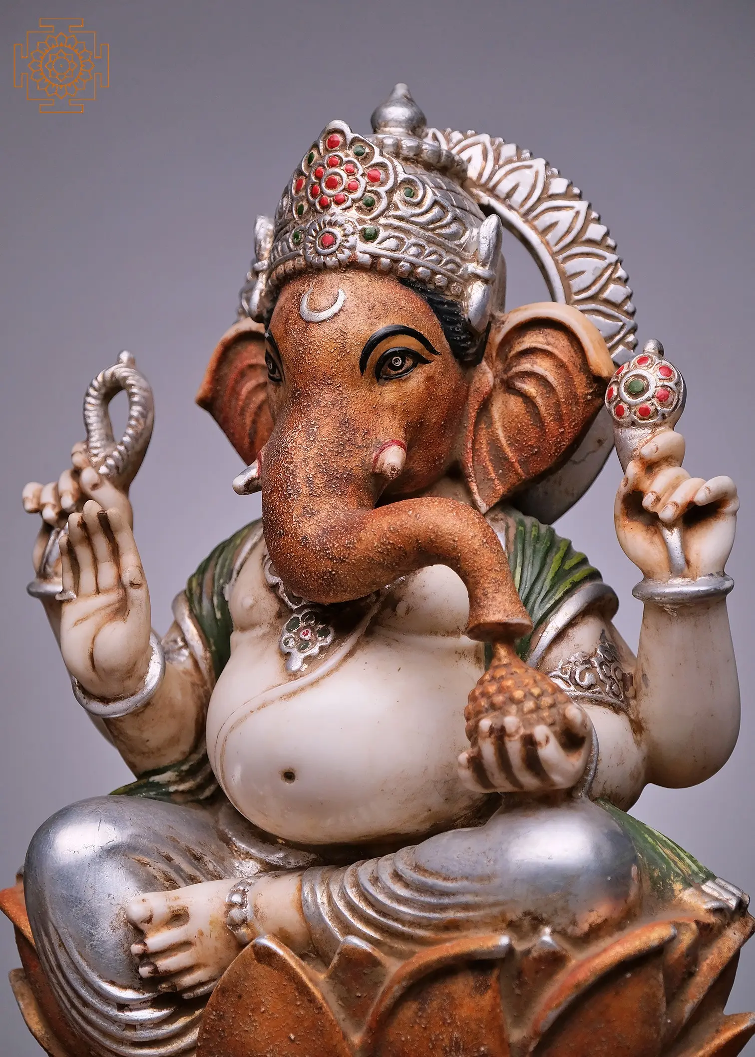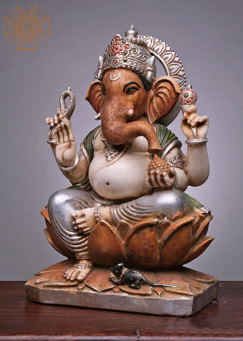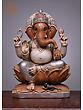 24" Chaturbhuja Lord Ganesha Seated on Lotus | Wood Carving