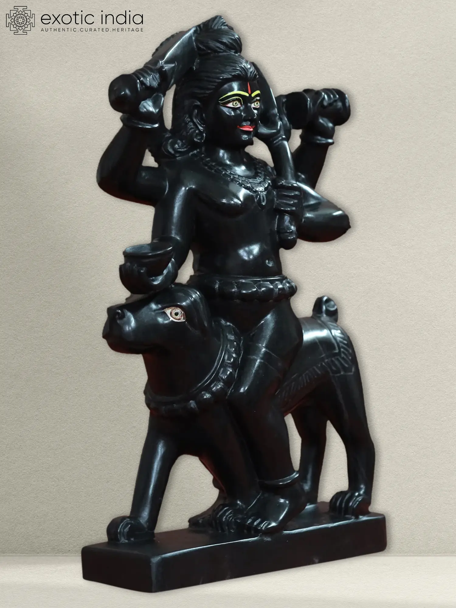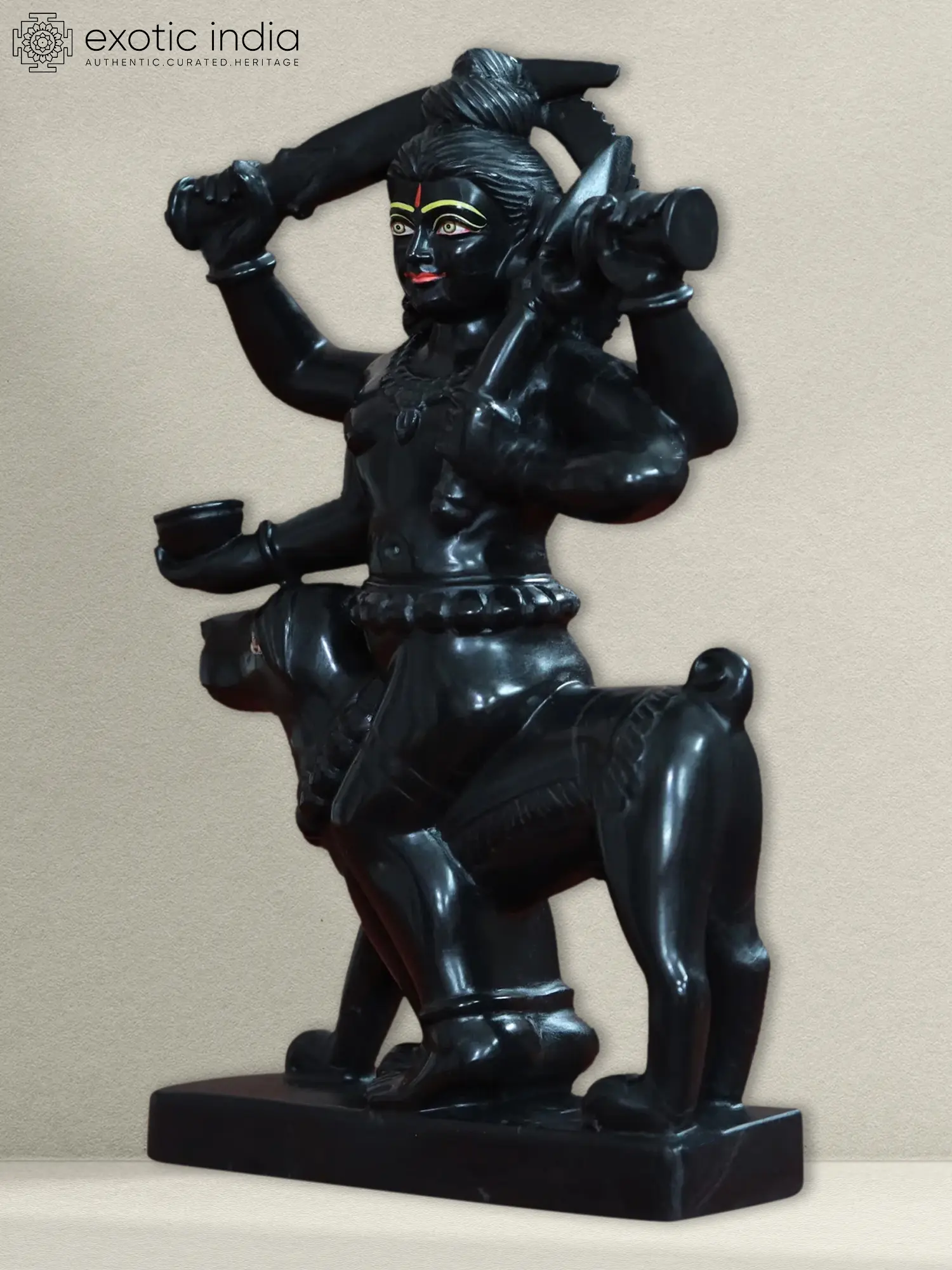 15" Kaal Bhairav Marble Statue For Home Décor | Rajasthan Black Marble Statue