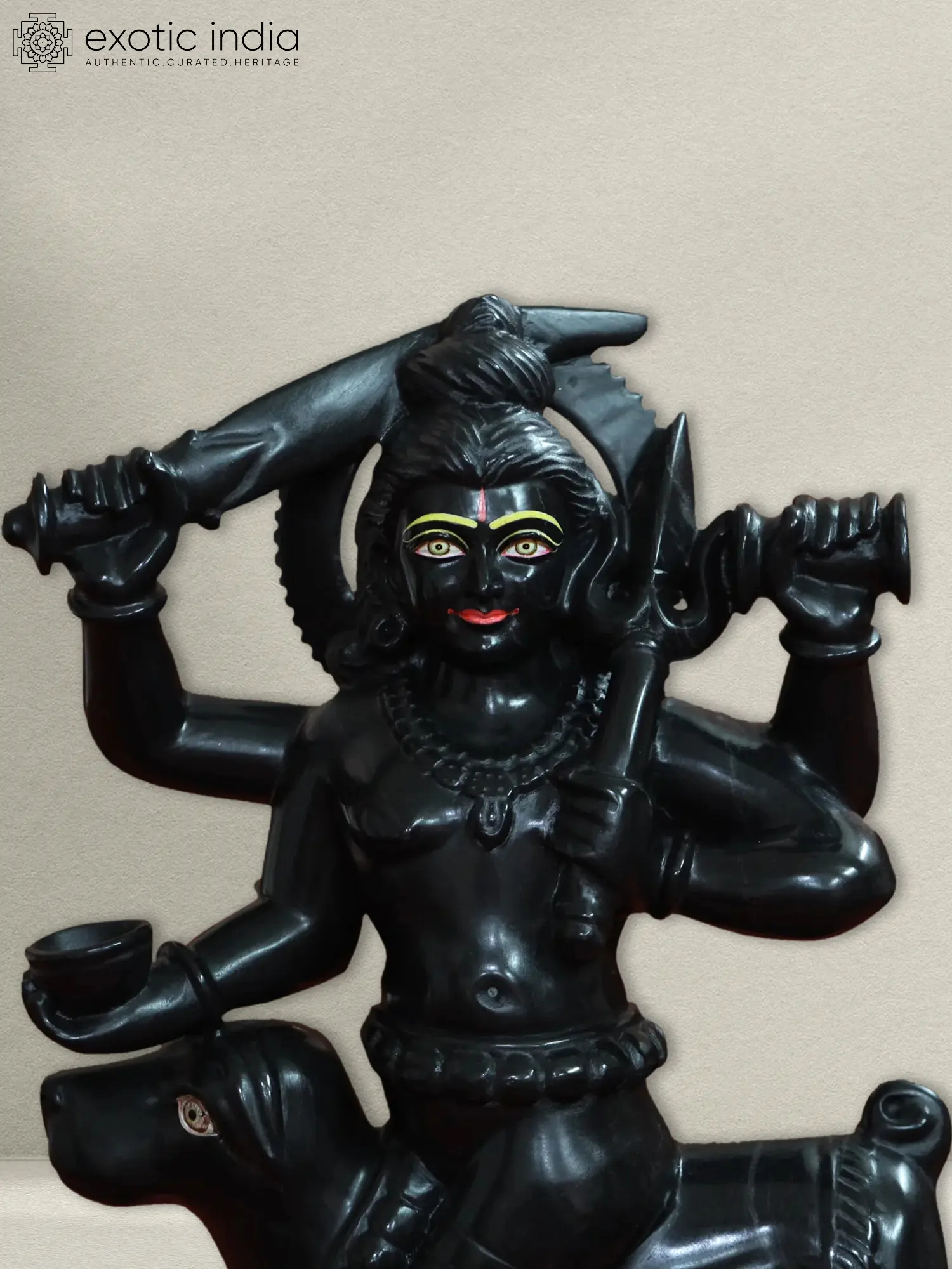 12" Multicolor Kaal Bhairav Statue For Temple | Rajasthan Black Marble Statue