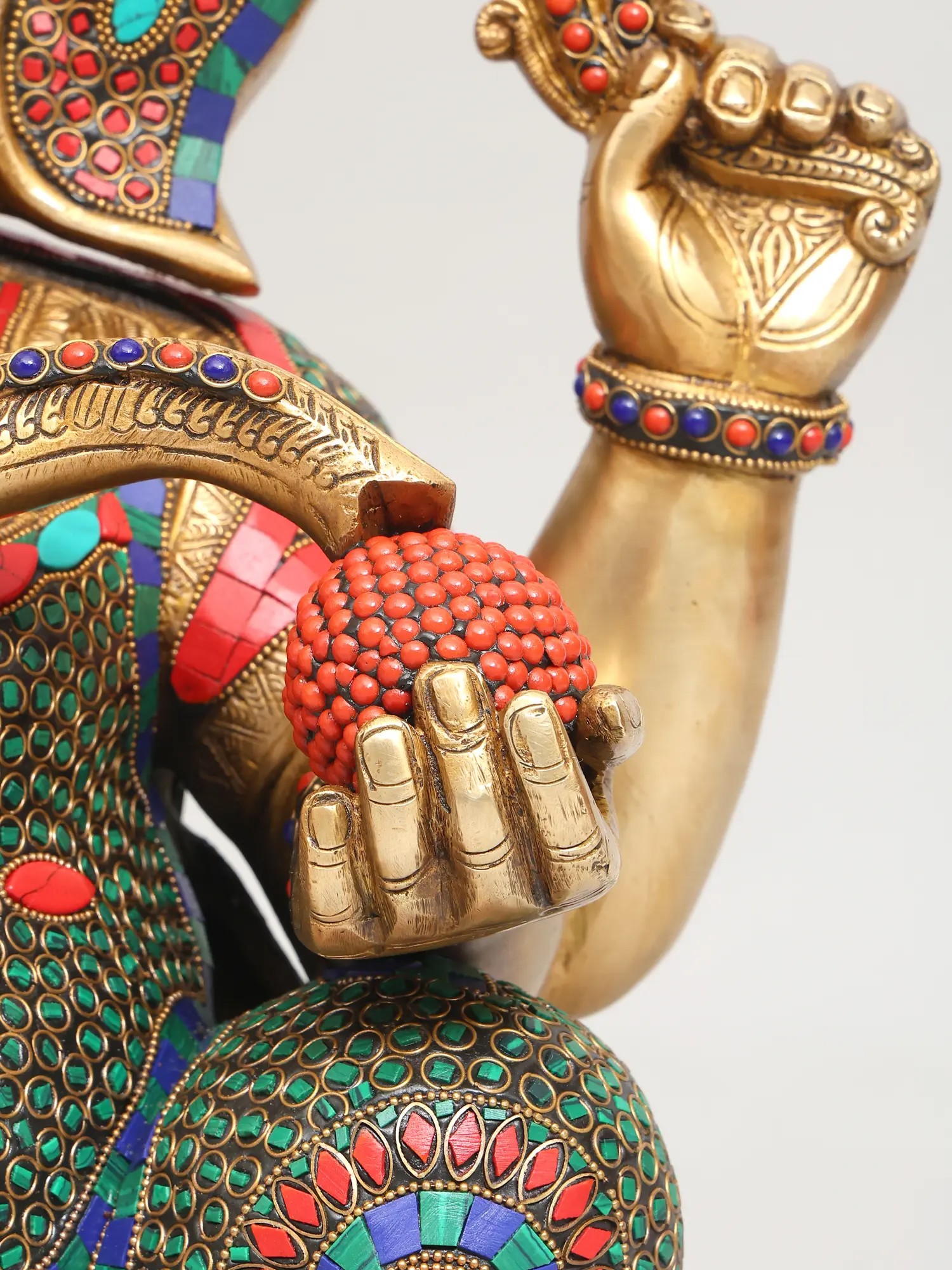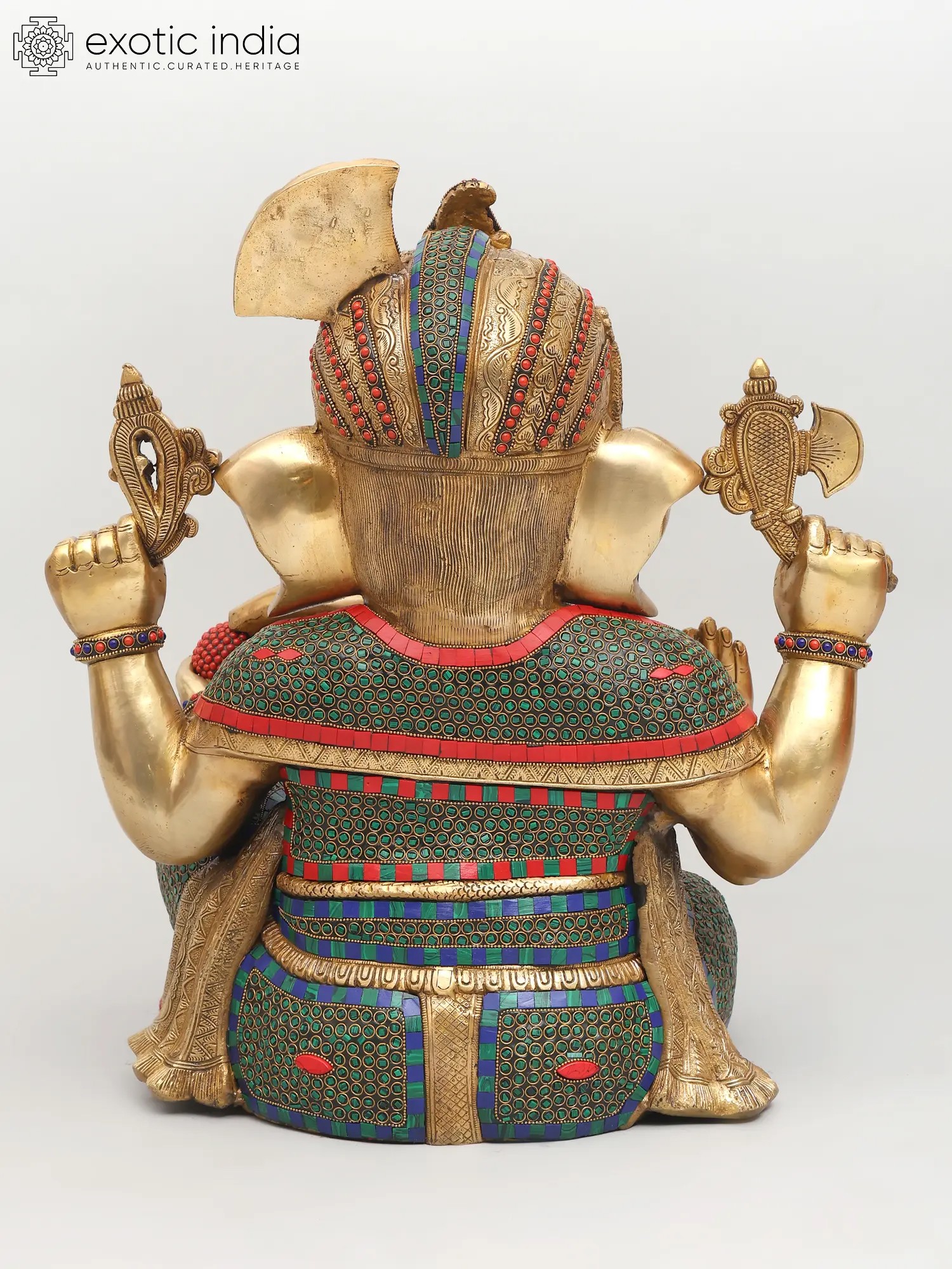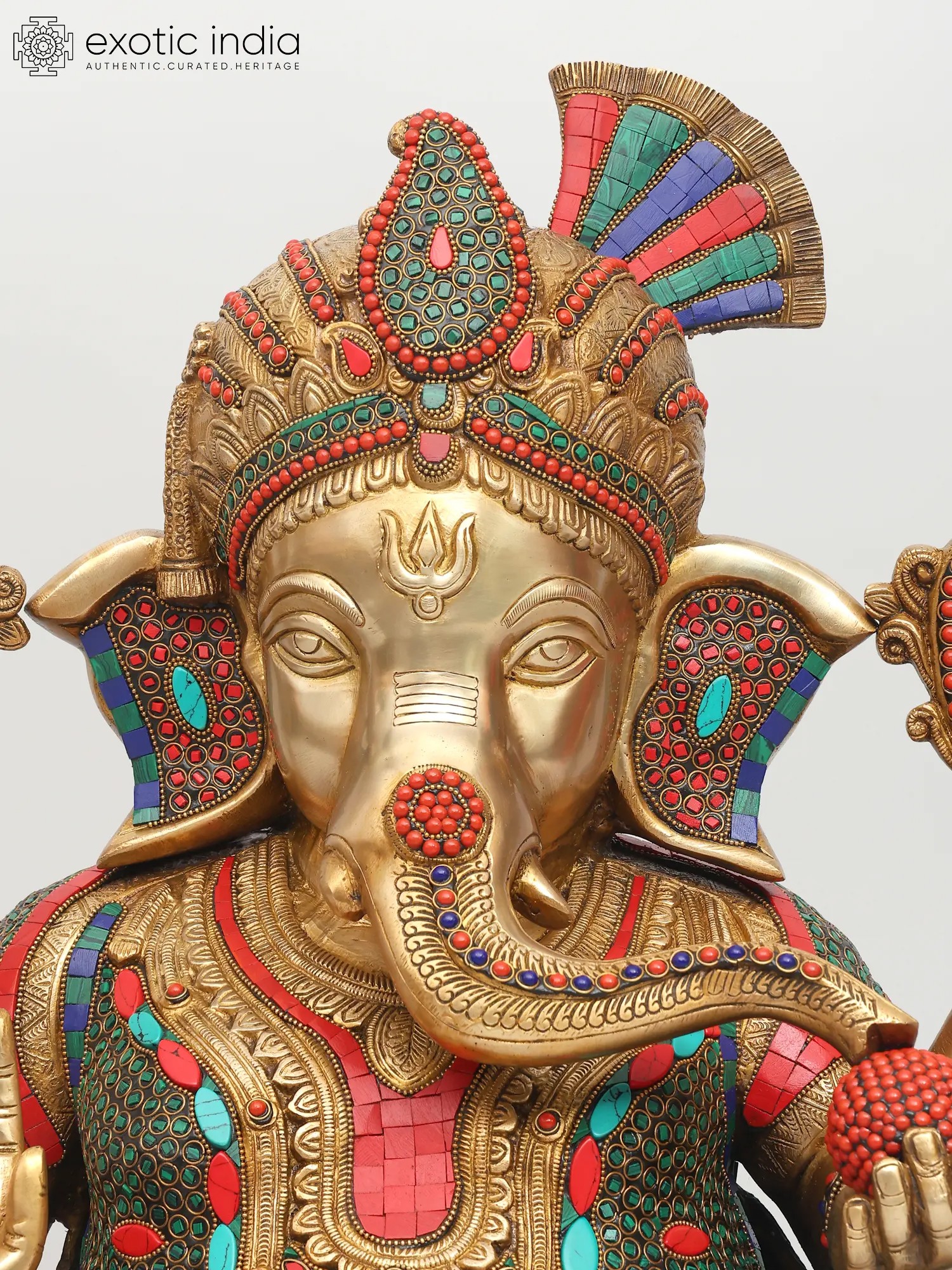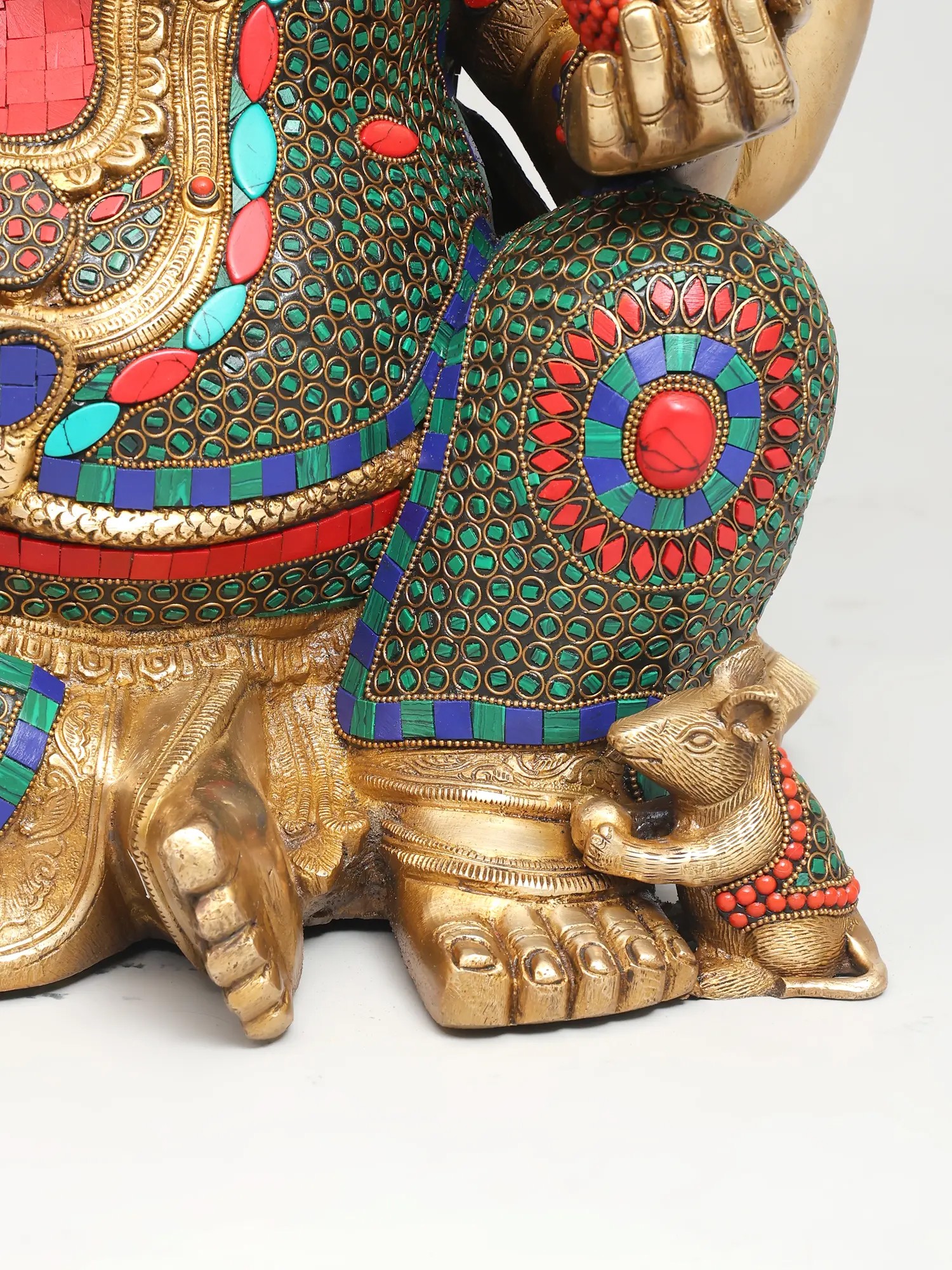 16" Colorful Inlayed Blessing Ganesha Inlay Brass Statue | Indian Handcrafted Idol