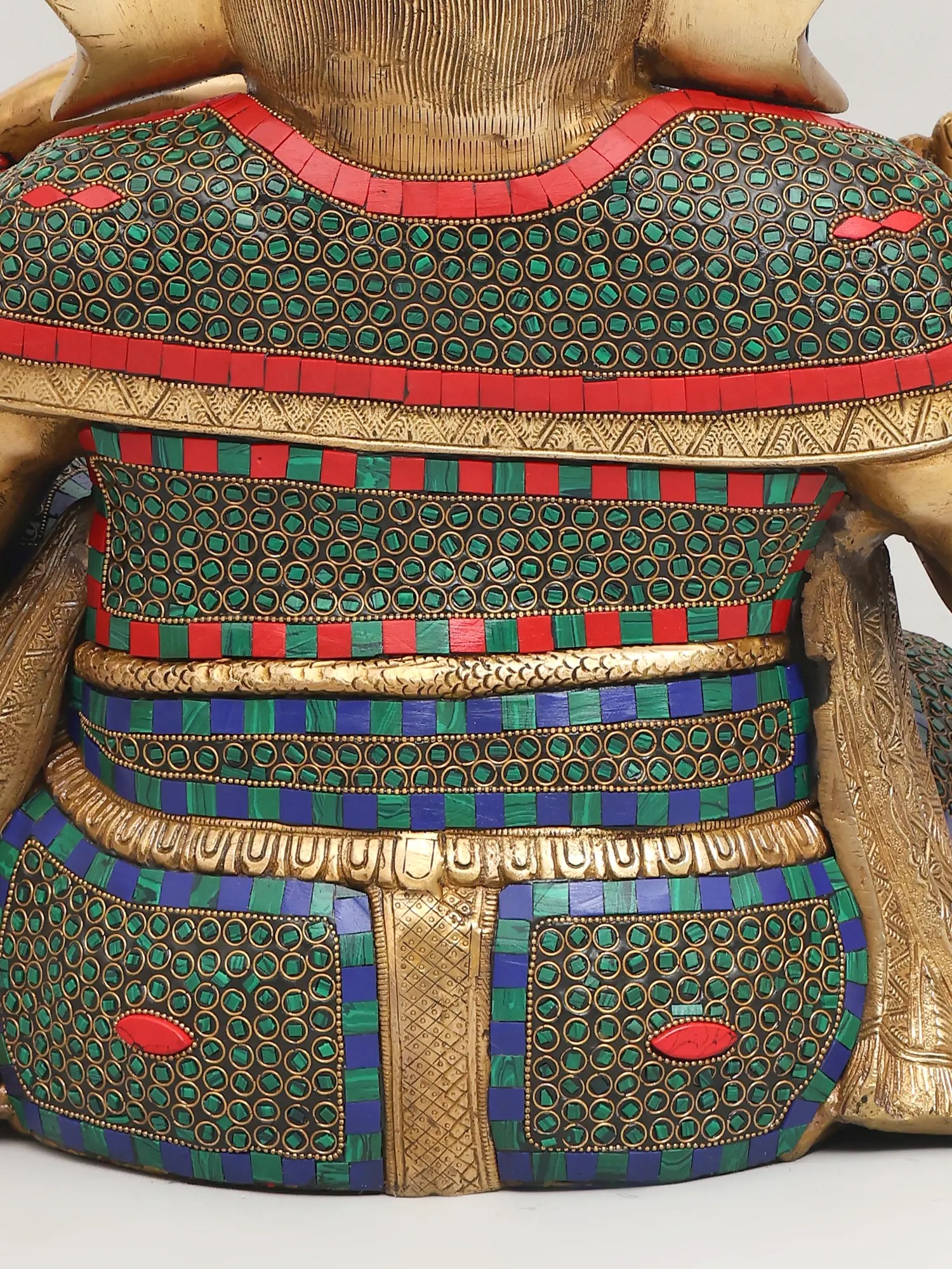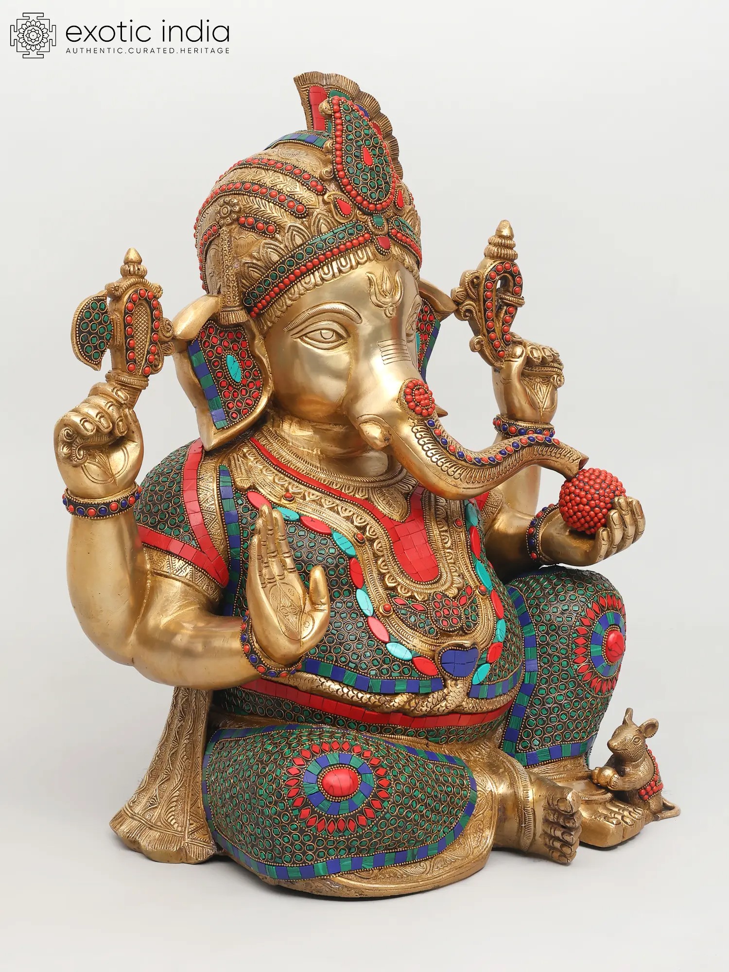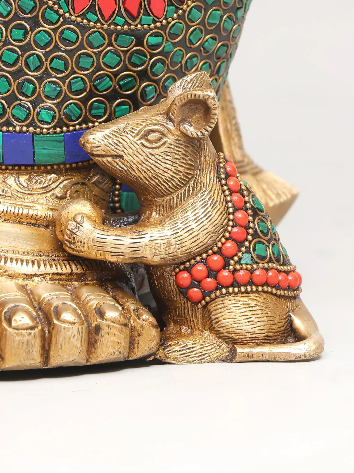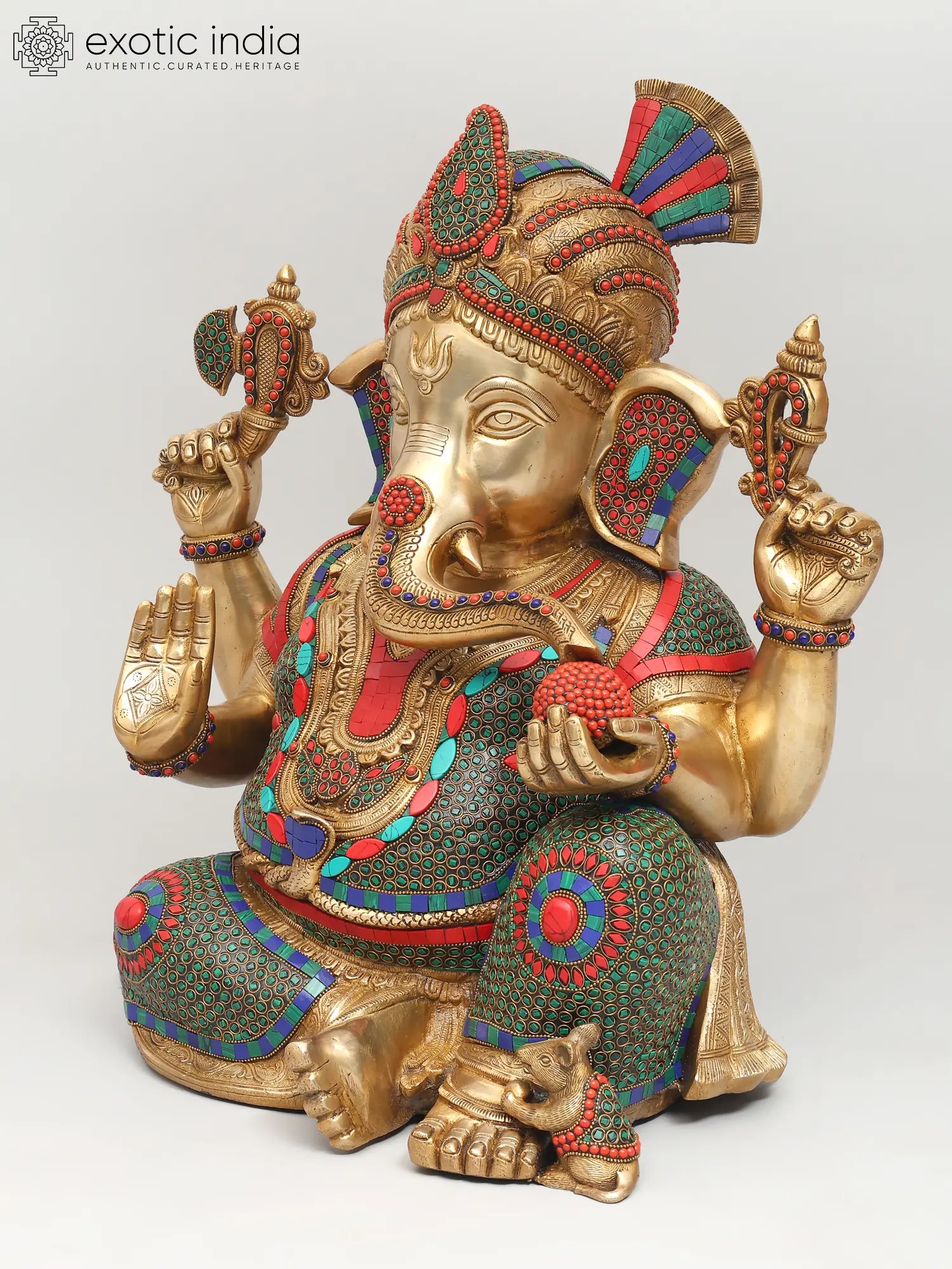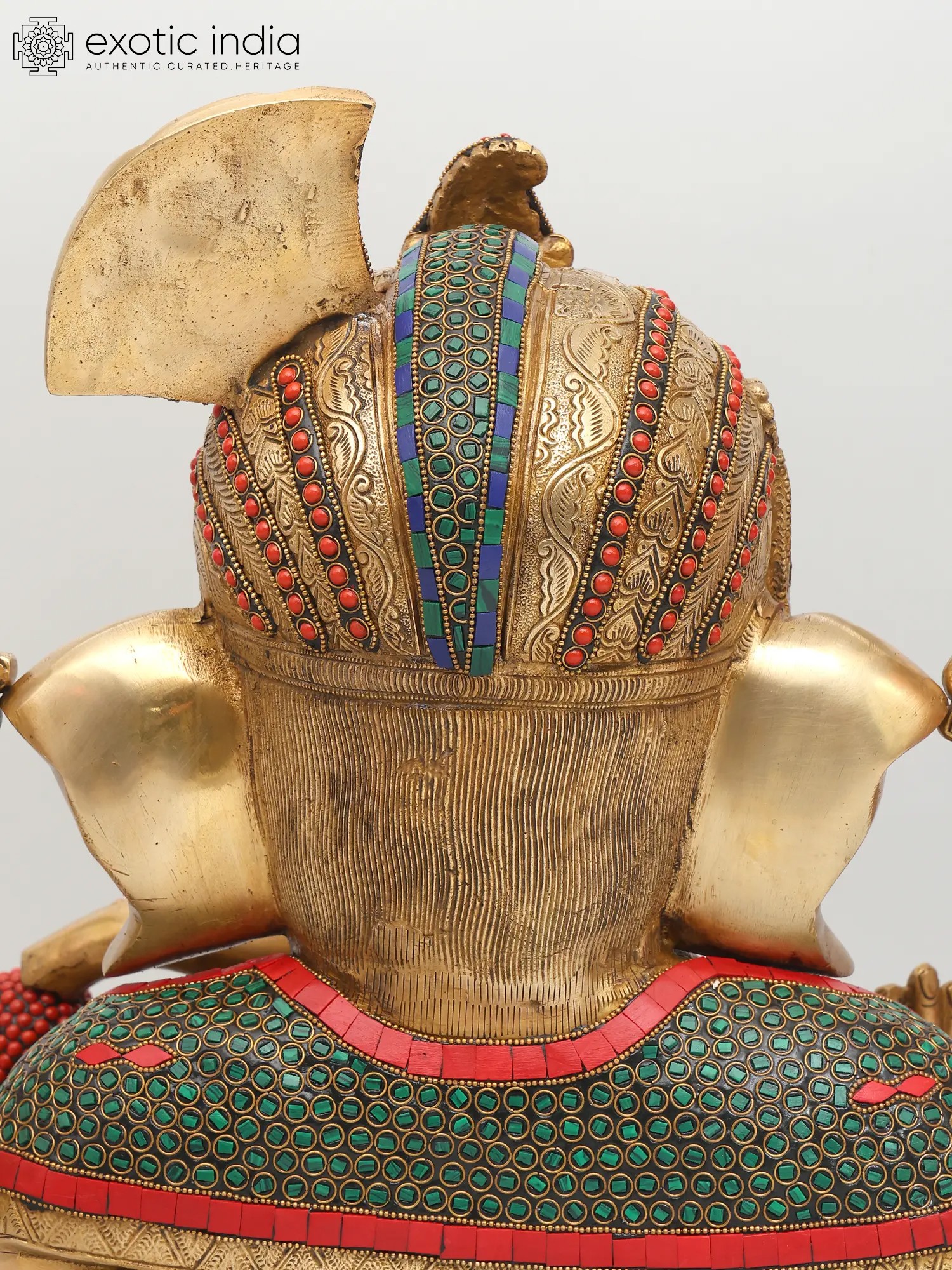 16" Colorful Inlayed Blessing Ganesha Inlay Brass Statue | Indian Handcrafted Idol