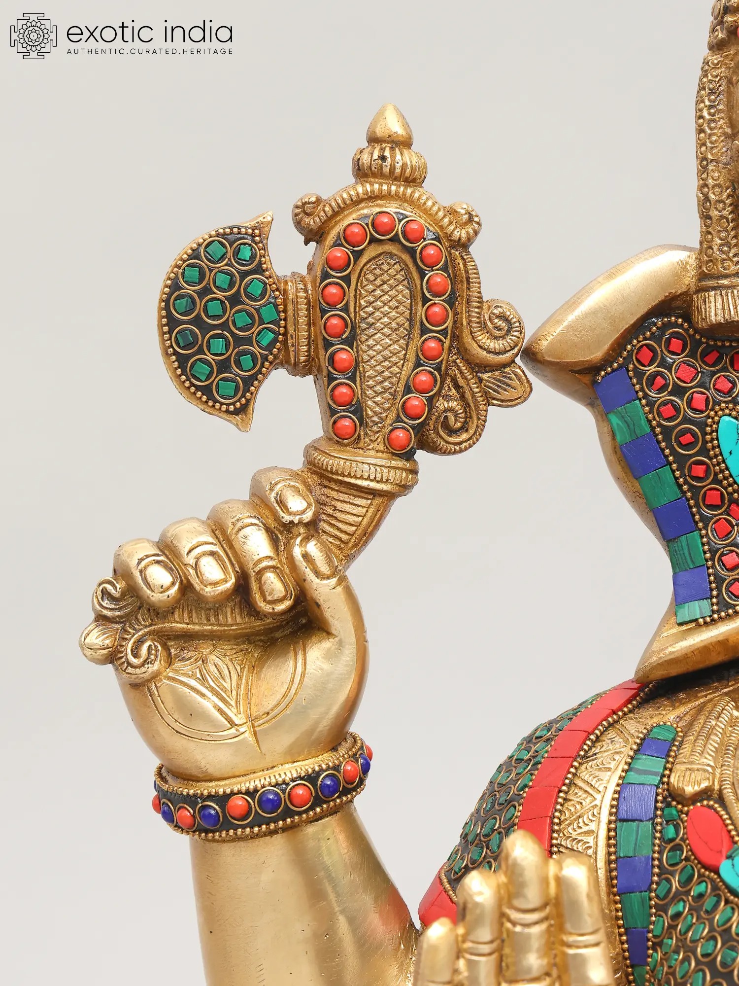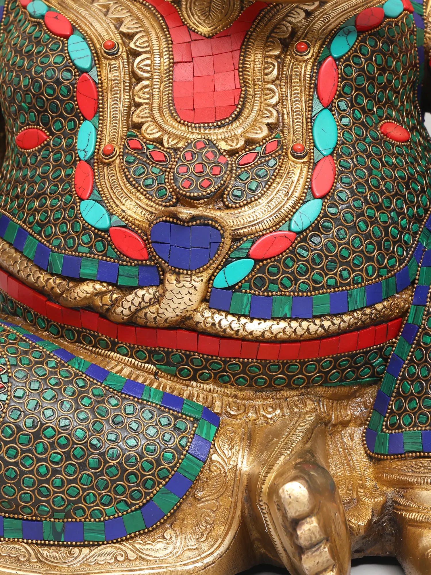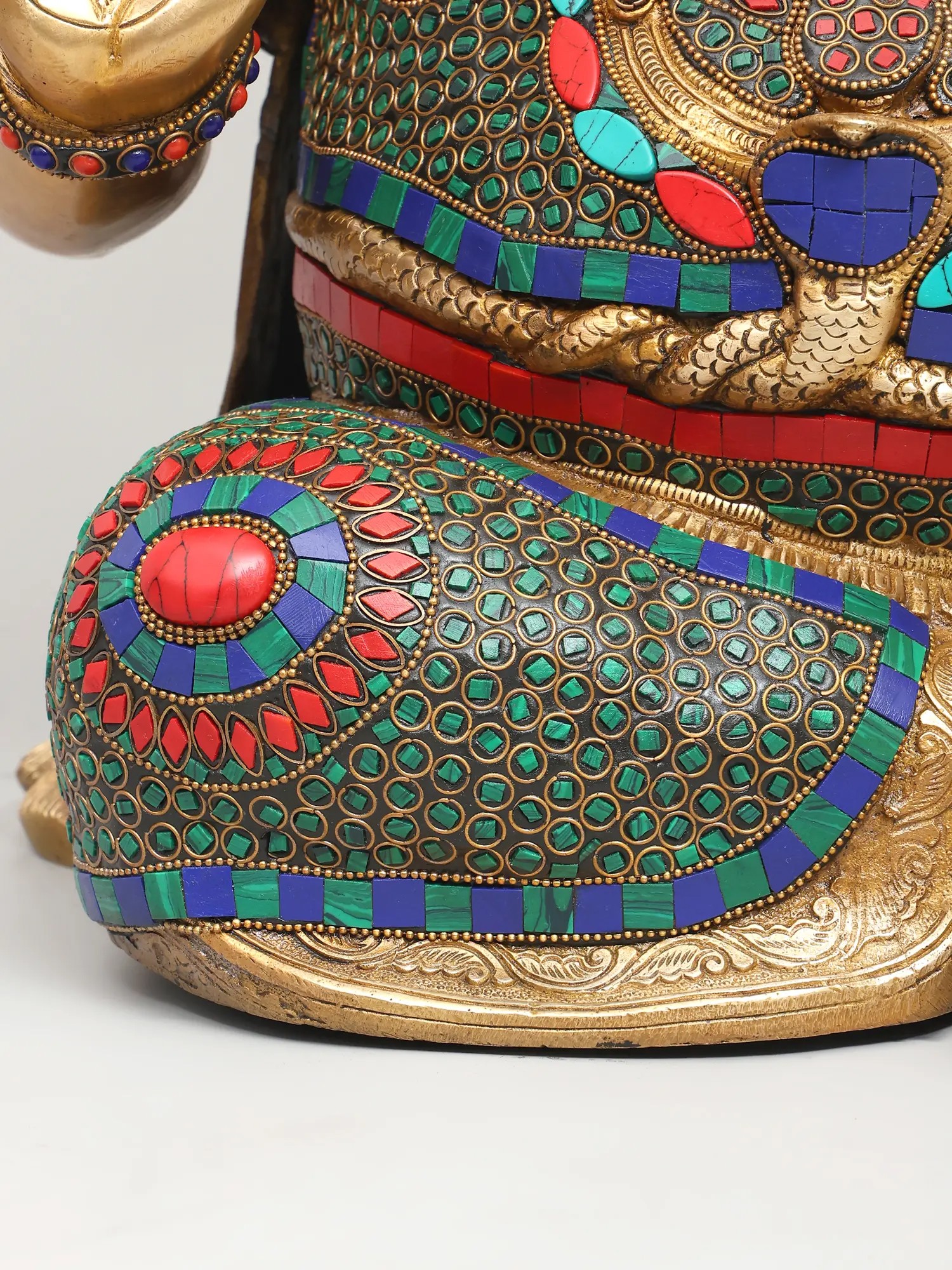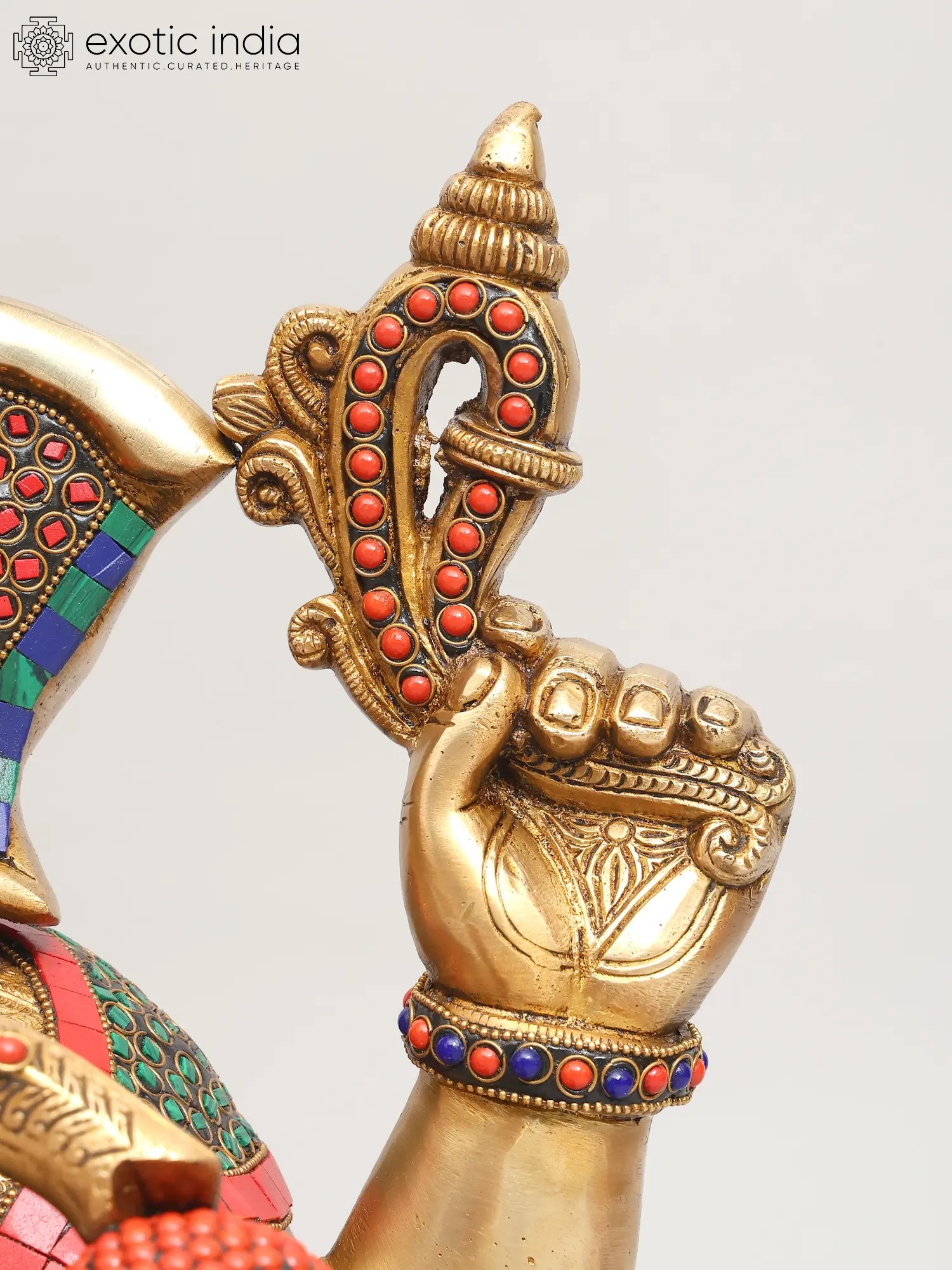 16" Colorful Inlayed Blessing Ganesha Inlay Brass Statue | Indian Handcrafted Idol