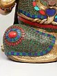 Seated regally, this representation of Lord Ganesha exudes an aura of benevolent power. Crafted from brass and adorned with meticulous inlay work, this statue embodies the essence of the beloved elephant-headed deity. Ganesha, revered as the remover of obstacles, the patron of arts and sciences, and the deva of intellect and wisdom, is a figure of profound significance in Hinduism. His image is often invoked at the beginning of rituals and ceremonies, a practice born from the belief that Ganesha clears the path for success and prosperity. The very sight of him inspires confidence and hope, reminding us that even the most daunting challenges can be overcome with wisdom and determination.