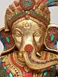 11" Blessing Ganesha Mask Wall Hanging in Brass | Handmade