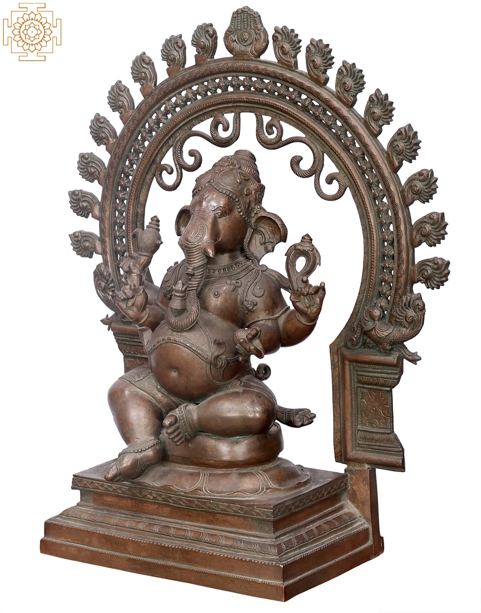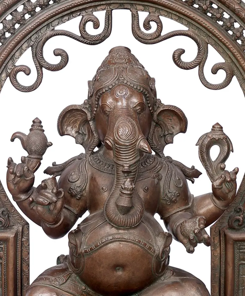 21" Sitting Ganesha with Big Arch | Handmade | Madhuchista Vidhana (Lost-Wax) | Panchaloha Bronze from Swamimalai