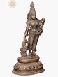 A baby Kartikeya rests on her mother’s waist while baby Ganesh holds her hand, standing upright with her support. Ma Parvati wears her hair in a jatamukut and is decked with jeweled ornaments. Her infant kids raise their tiny hands in Abhaya mudra, hinting at their godly status even when they are mere babies. Focusing solely on her role as their guardian, Parvati in this pleasing bronze is a divine picture of maternity.