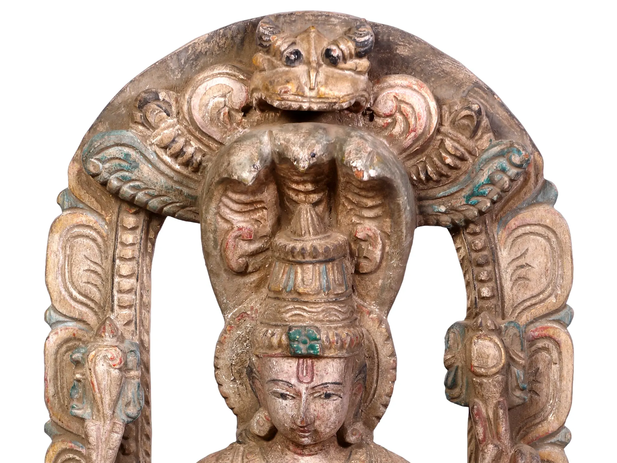 12" Lord Vishnu Wall Panel with Sheshnag | Wood Carving