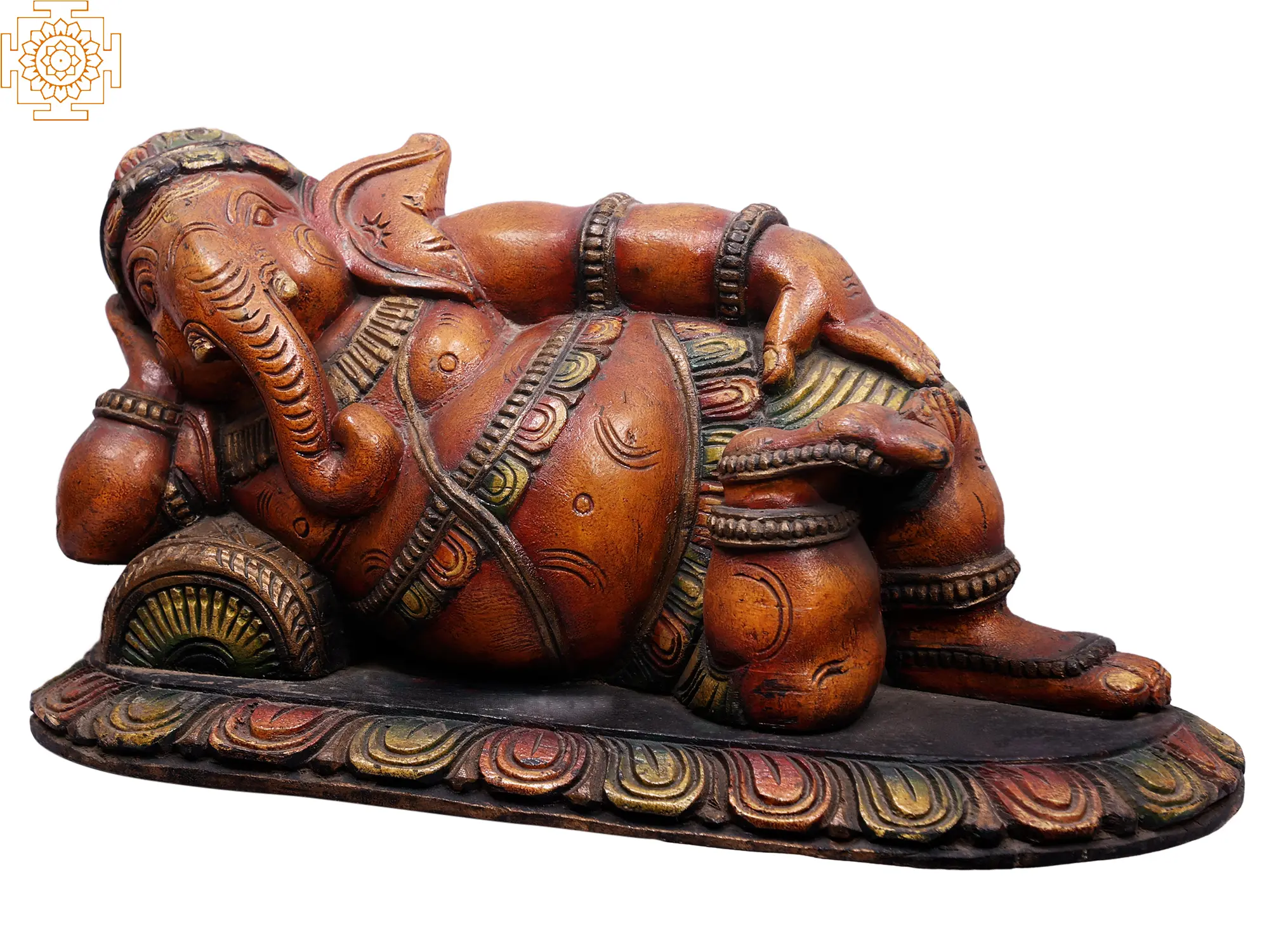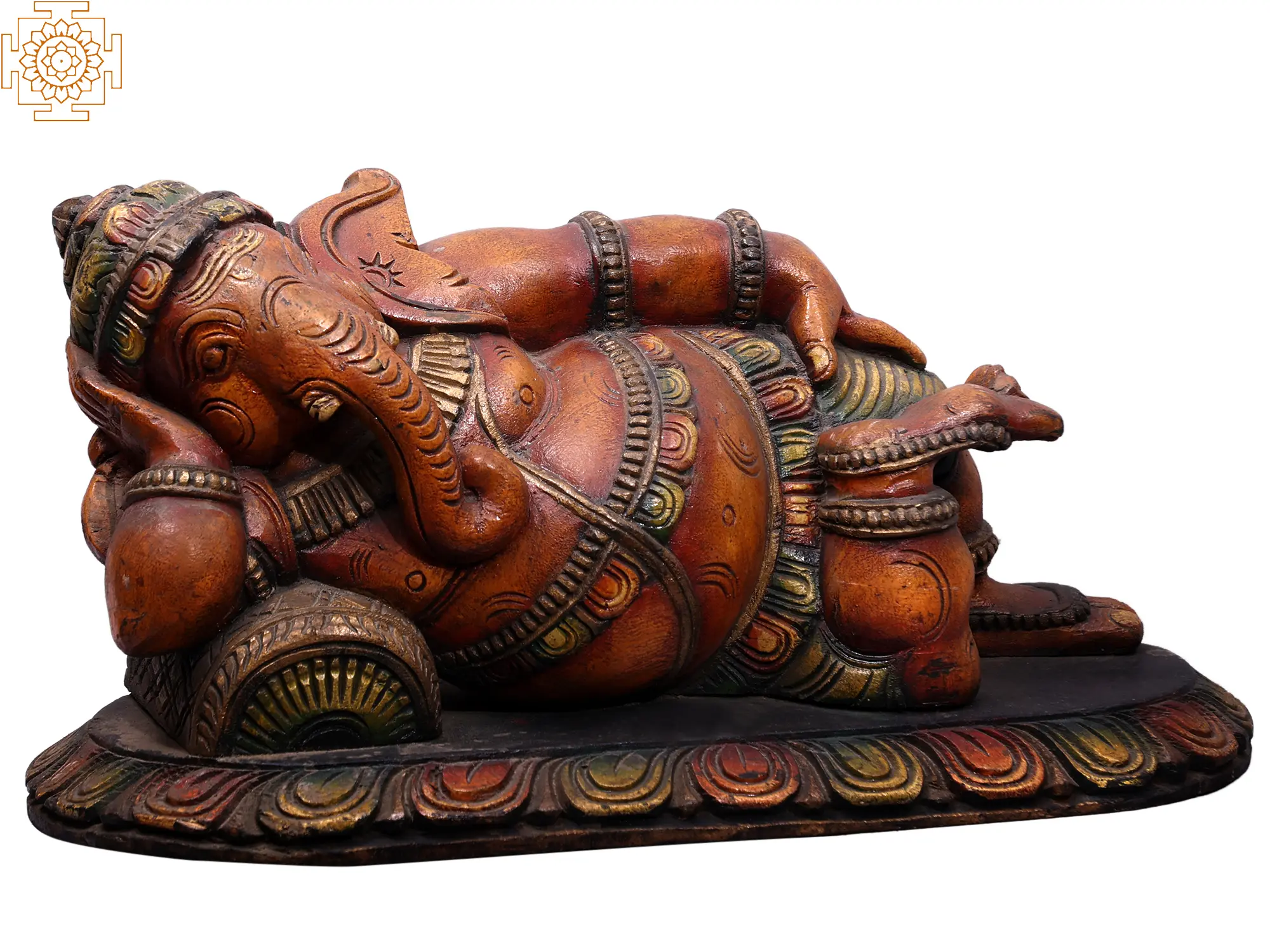 21" Wooden Reclining Lord Ganesha