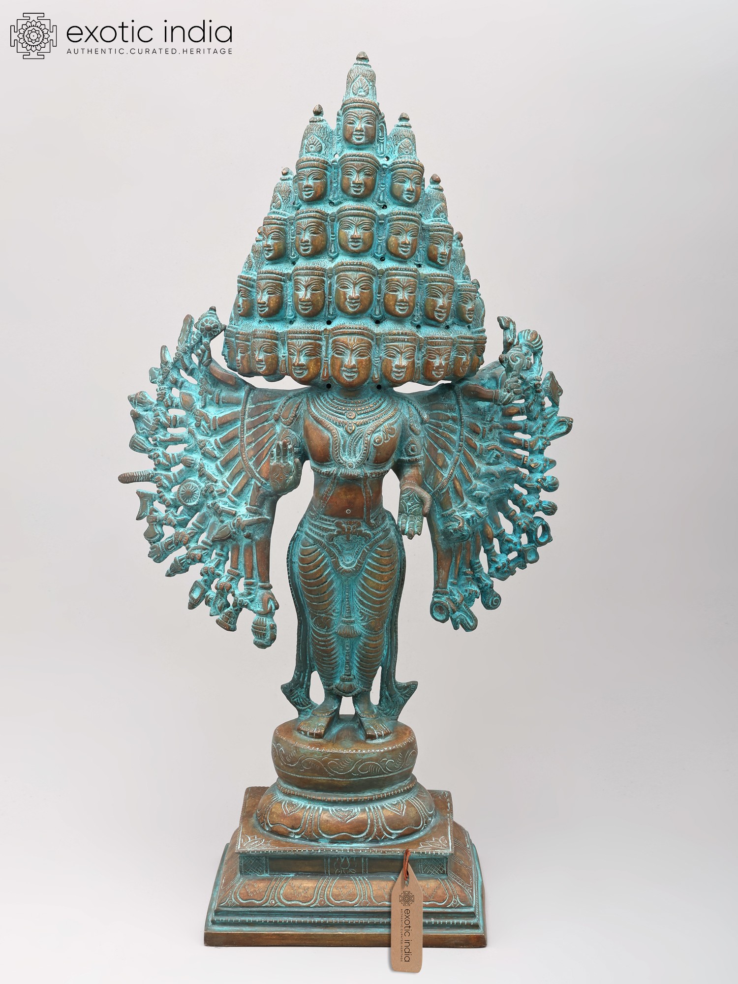 19" Eleven Headed Thousand-Armed Avalokiteshvara Brass Statue | Handmade Tibetan Buddhist Idol | Made in India