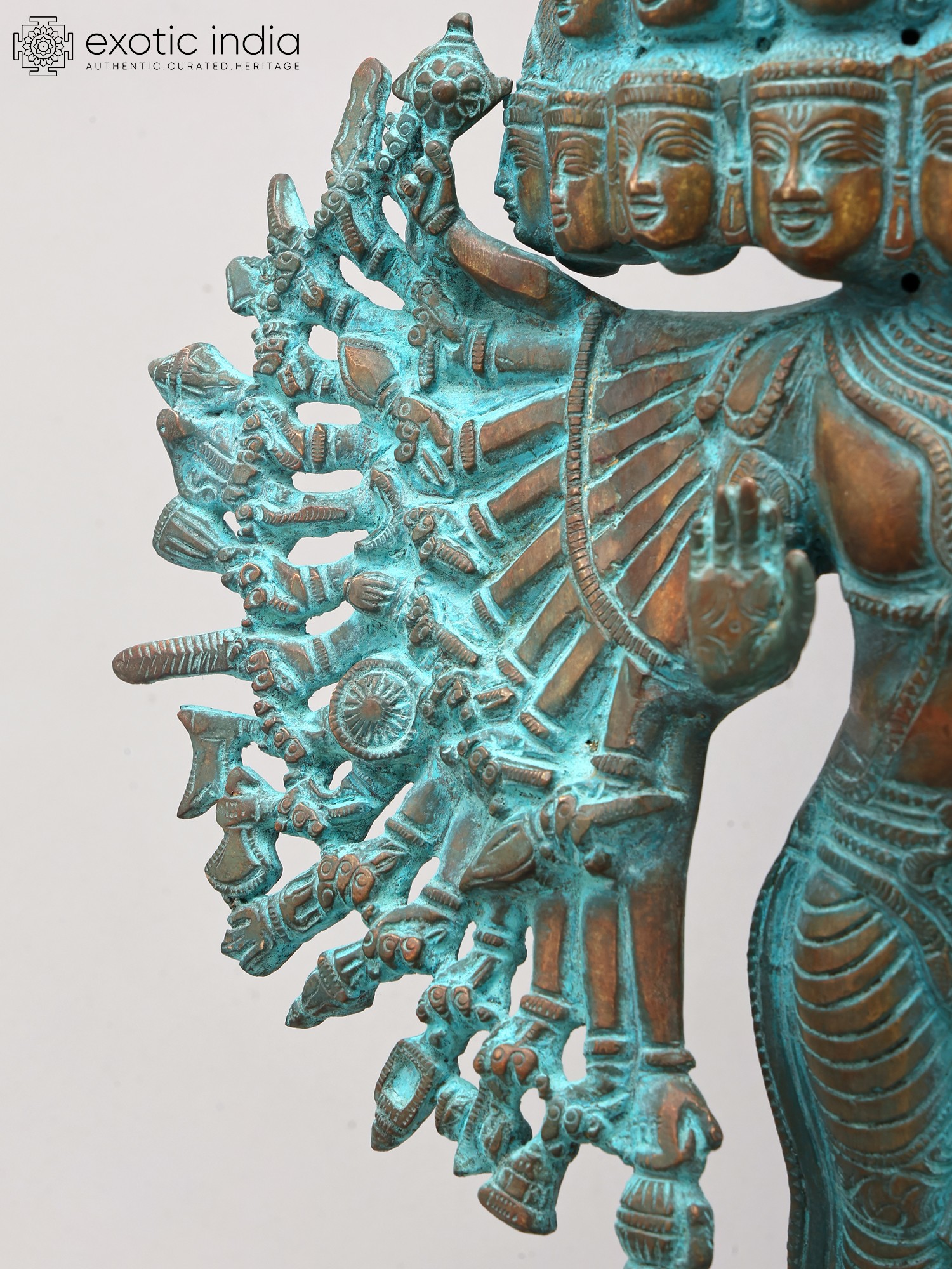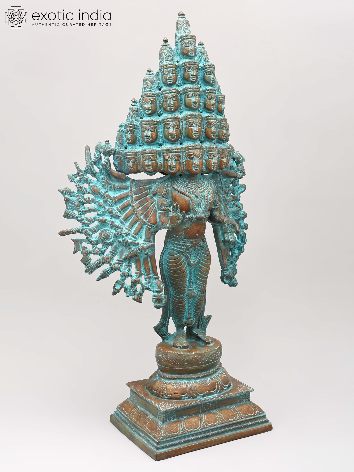 14" The Eleven Heads, The Thousand Arms of Avalokiteshvara Brass Statue | Handmade | Made in India