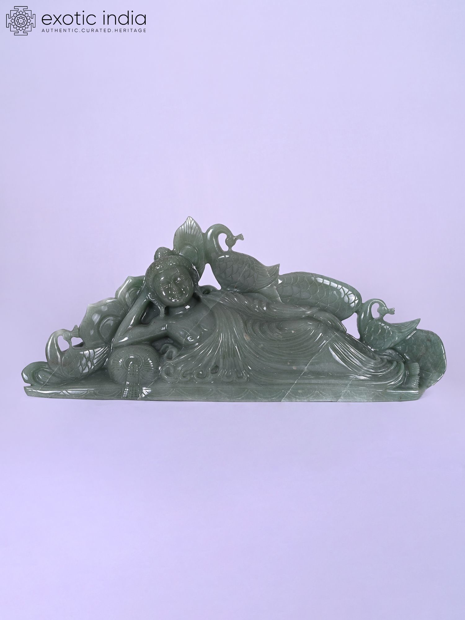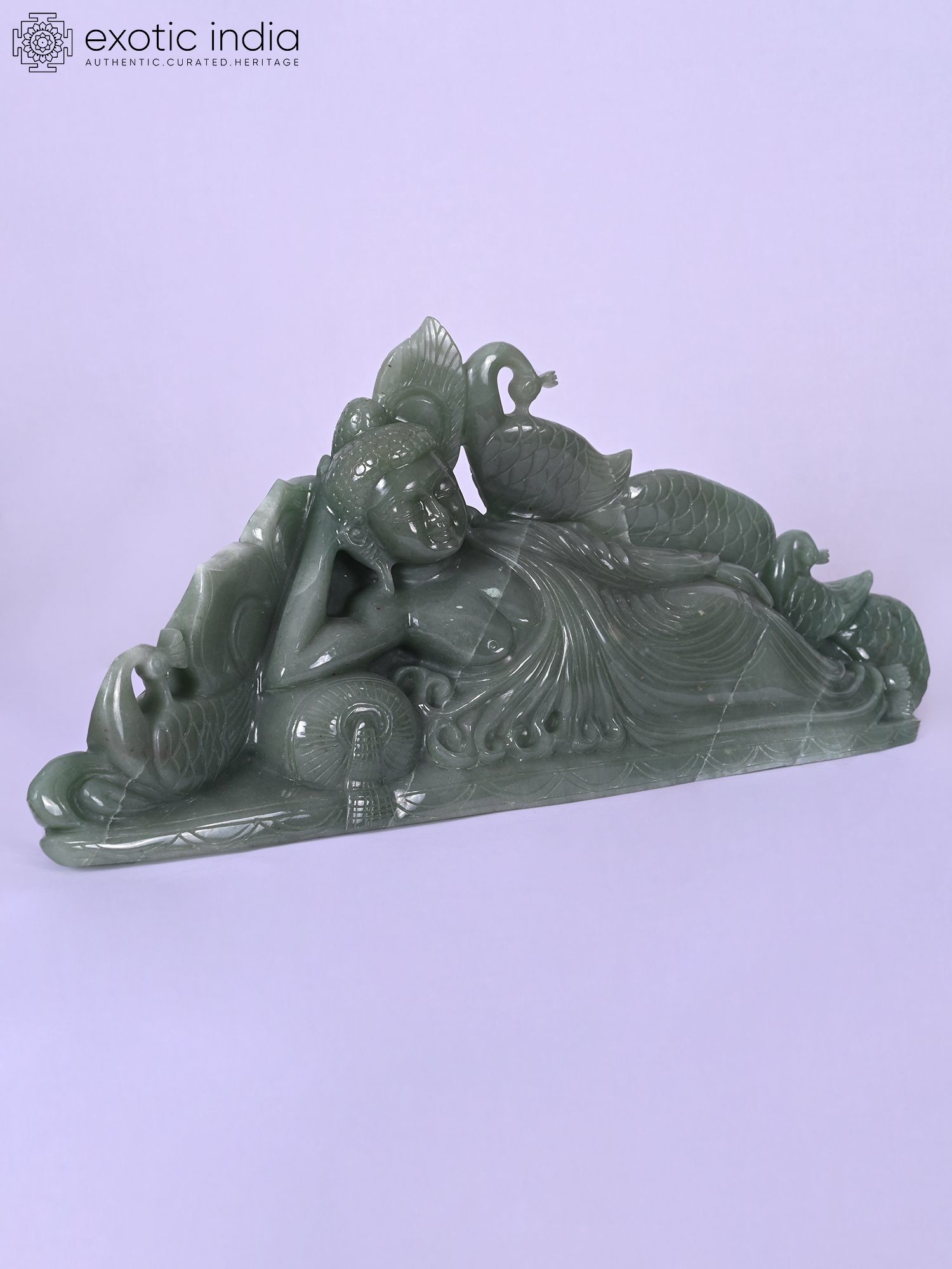 6" Green Color Relaxing Lord Buddha Statue in Brass