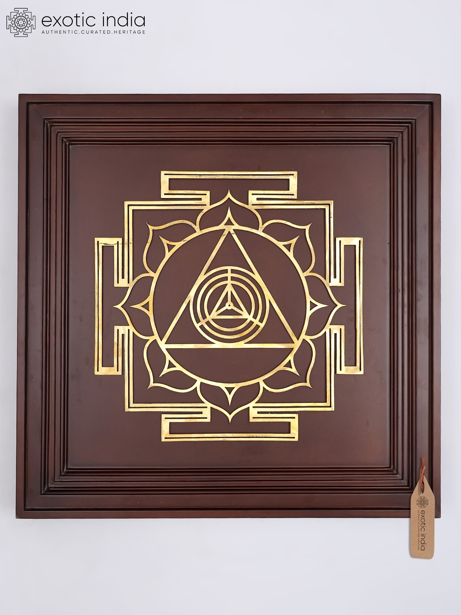 23" Tripura Sundari Yantra for spiritual growth, harmony, and protection | Brass Yantra on Wood Frame | Wall Hanging