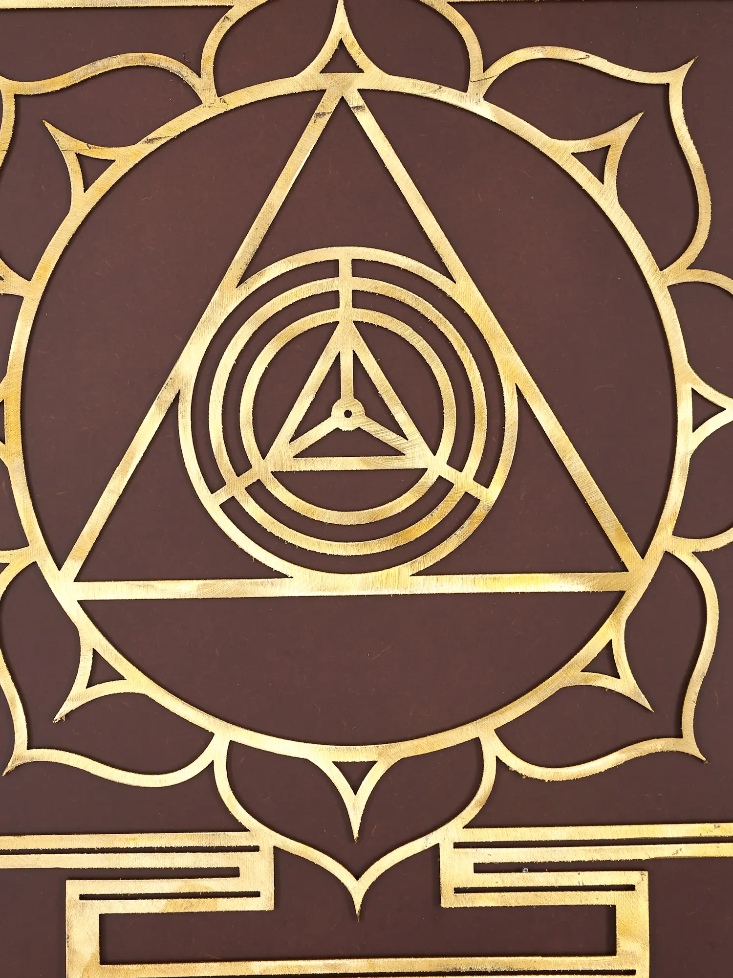 This exquisite yantra, a sacred geometric diagram used in Tantric rituals and meditation, is more than just an object of art; it is a powerful tool designed to invoke spiritual enlightenment and material abundance. Crafted with precision and reverence, the yantra features intricate patterns etched in radiant brass, embedded within a rich, dark wooden frame. This piece serves as a focal point for devotion, contemplation, and the manifestation of desires, bridging the earthly and the divine realms.