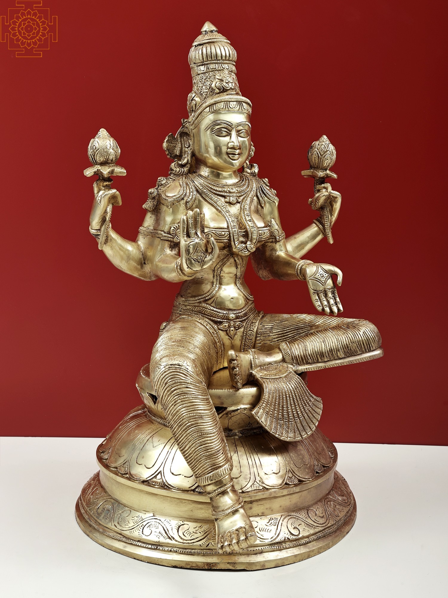 The idol or deity of Goddess Lakshmi comes in various materials such as brass, wood, marble, copper, bronze, etc. If you are planning to keep a deity of Lakshmi Devi at your home, the best material would be either brass or marble. Brass is known for its exquisite appearance resembling gold and is also a strong material. Marble is preferred by most people because it lasts longer than any other material.