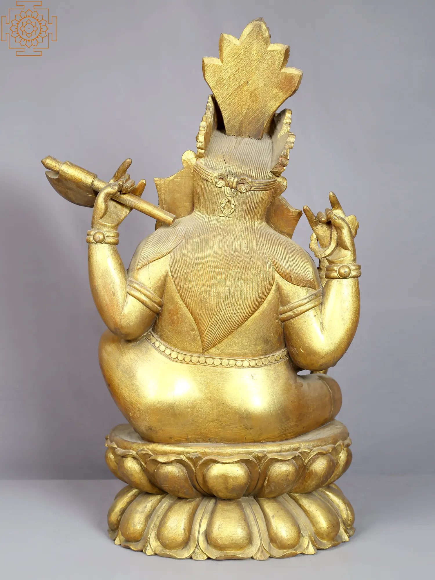 8" Decorated Lord Ganesha Seated On Pedestal From Nepal