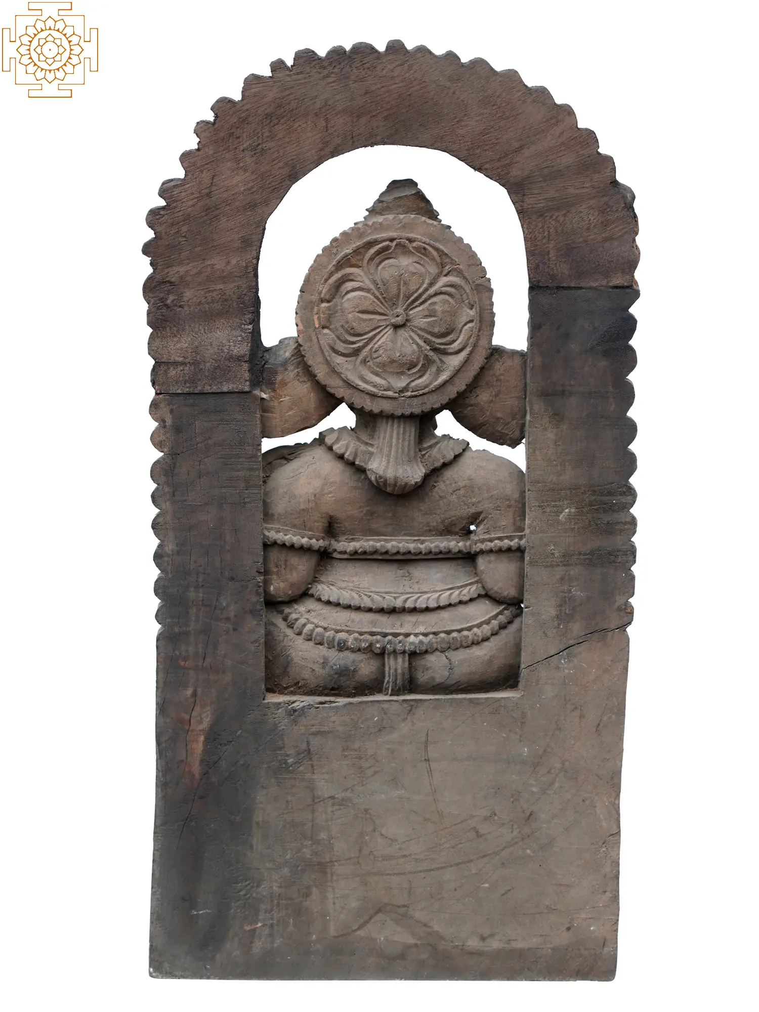 “Vinayaka”- he who is the supreme Nayaka or leader, of Shiva Ganas, is Sri Ganesha. In this wooden statue, Lord Vinayaka, or Ganesha is on a throne adorned by vegetation, symbolizing the bloom of life and auspiciousness in his reign. Ganesha is adorned marvelously, with his characteristic Karandamukuta or inverted-basket-shaped crown, bejeweled ornaments, and the symbol of “Om” on his trunk. Om and Ganesha for the followers of the elephant-faced deity are manifestations of the same divine principle, Param Brahmana, which is embodied in the ever-auspicious form of Vinayaka.