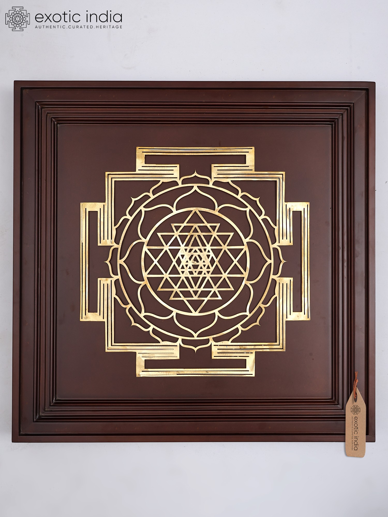 23" Tara Yantra for Protection from Negative Energies, Fear and Anxiety | Brass Yantra on Wood Frame | Wall Hanging