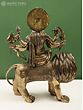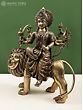 A simhavahini Durga of this scale and make would be a fine addition to your home or community temple. It is a work of art that has been executed with equal parts skill and equal parts shraddha, as could be gleaned from the dense yet high-precision engravings on the Mother’s crown as well as Her saree. The right anteriormost hand, however, is raised in blessing over any heart that may turn to Her in all sincerity. The lion beneath Her looks ahead with an expression of supreme determination on its face, subject only to the will of its omnipotent mistress.