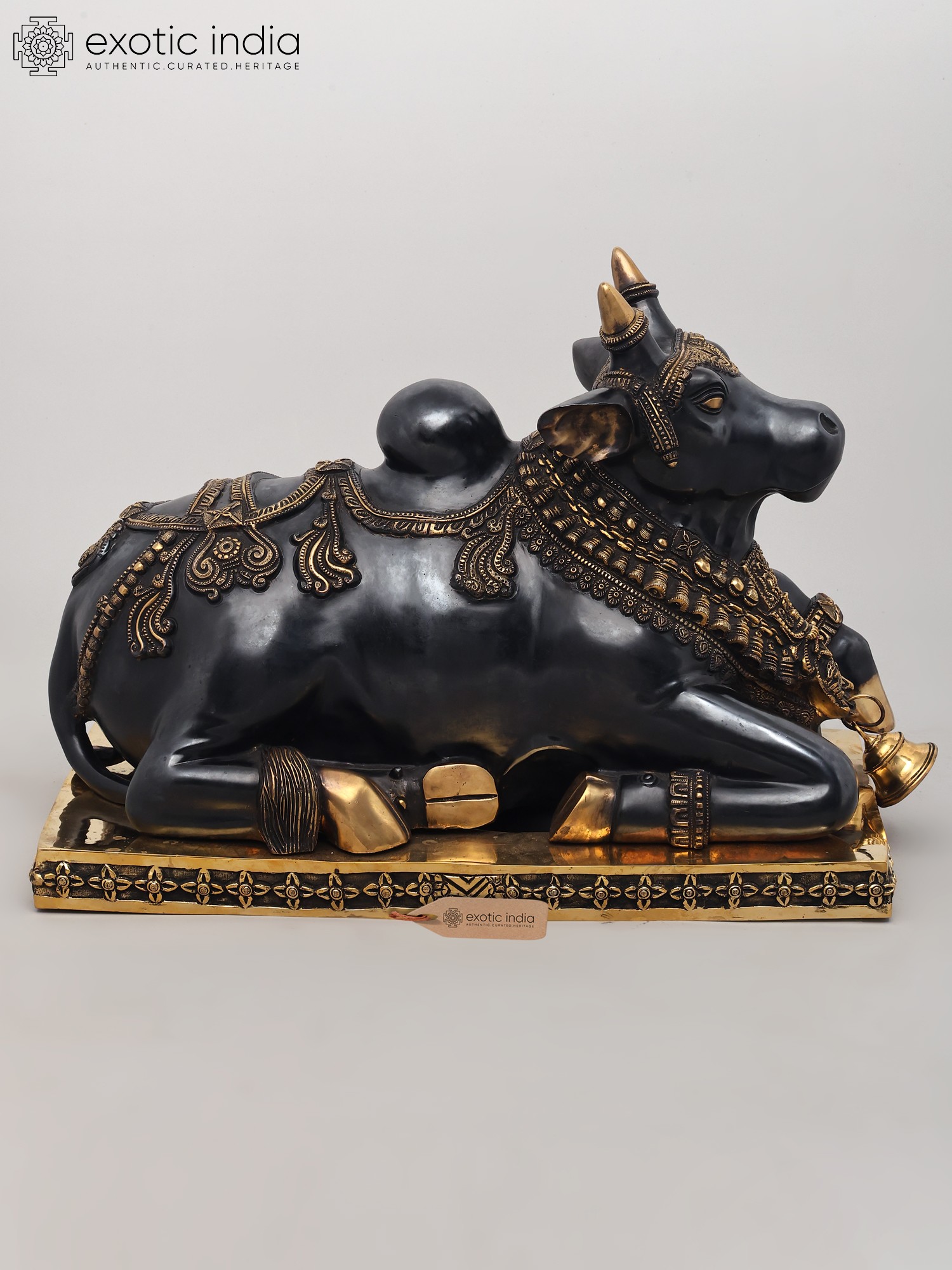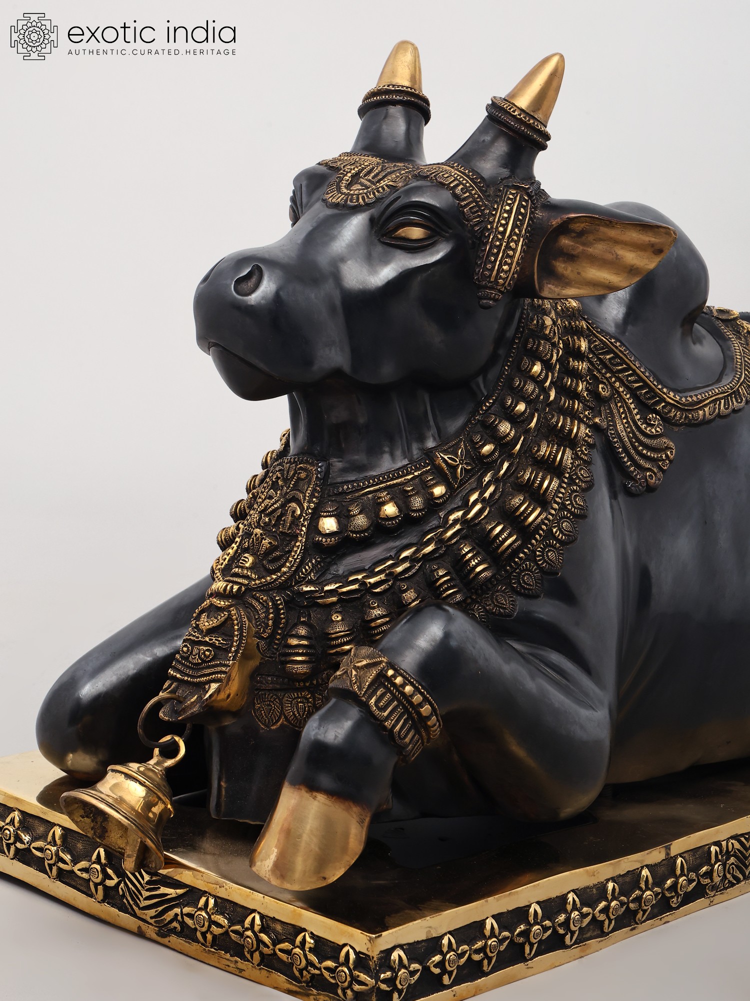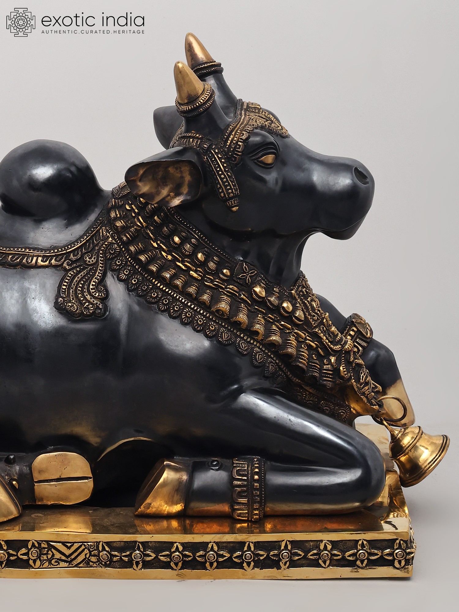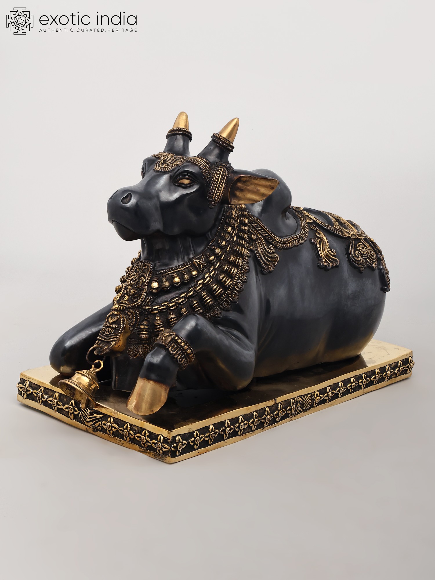 10" Large Size Nandi Hand-Held Bell in Brass | Handmade | Made in India