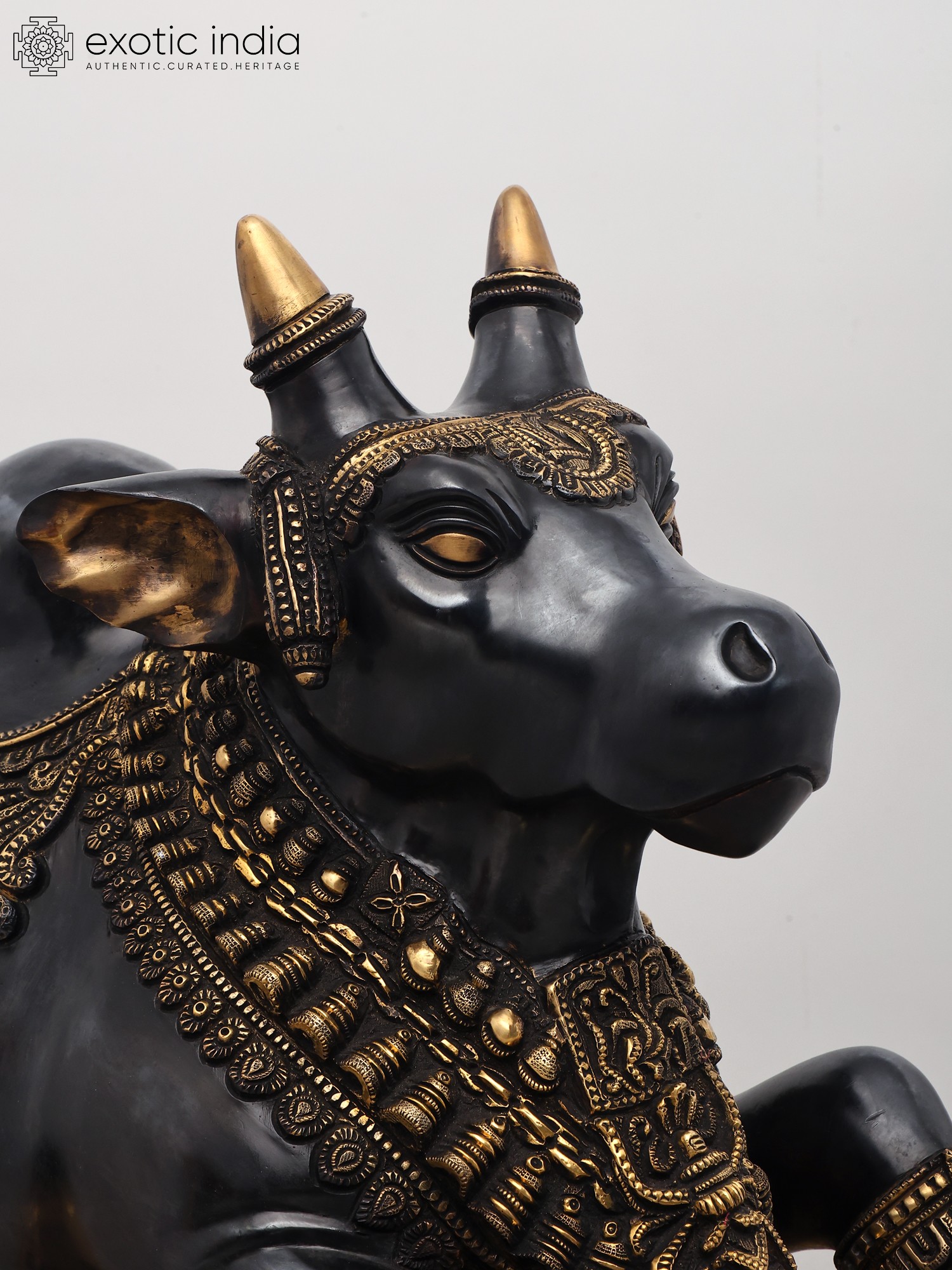 This magnificent brass statue captures the essence of Nandi, the revered bull and eternal vahana (mount) of Lord Shiva. Crafted with meticulous detail and an exceptional finish, this representation of divine devotion embodies serenity, strength, and unwavering loyalty. Nandi is not merely a vehicle; he is a symbol of dharma, righteousness, and the disciplined mind, always facing Lord Shiva, signifying the devotee's ultimate surrender and focused meditation. In Hindu mythology, Nandi is also considered the chief of Shiva's ganas (attendants) and the guardian of his abode, Mount Kailash. His presence is believed to bestow peace, prosperity, and protection.