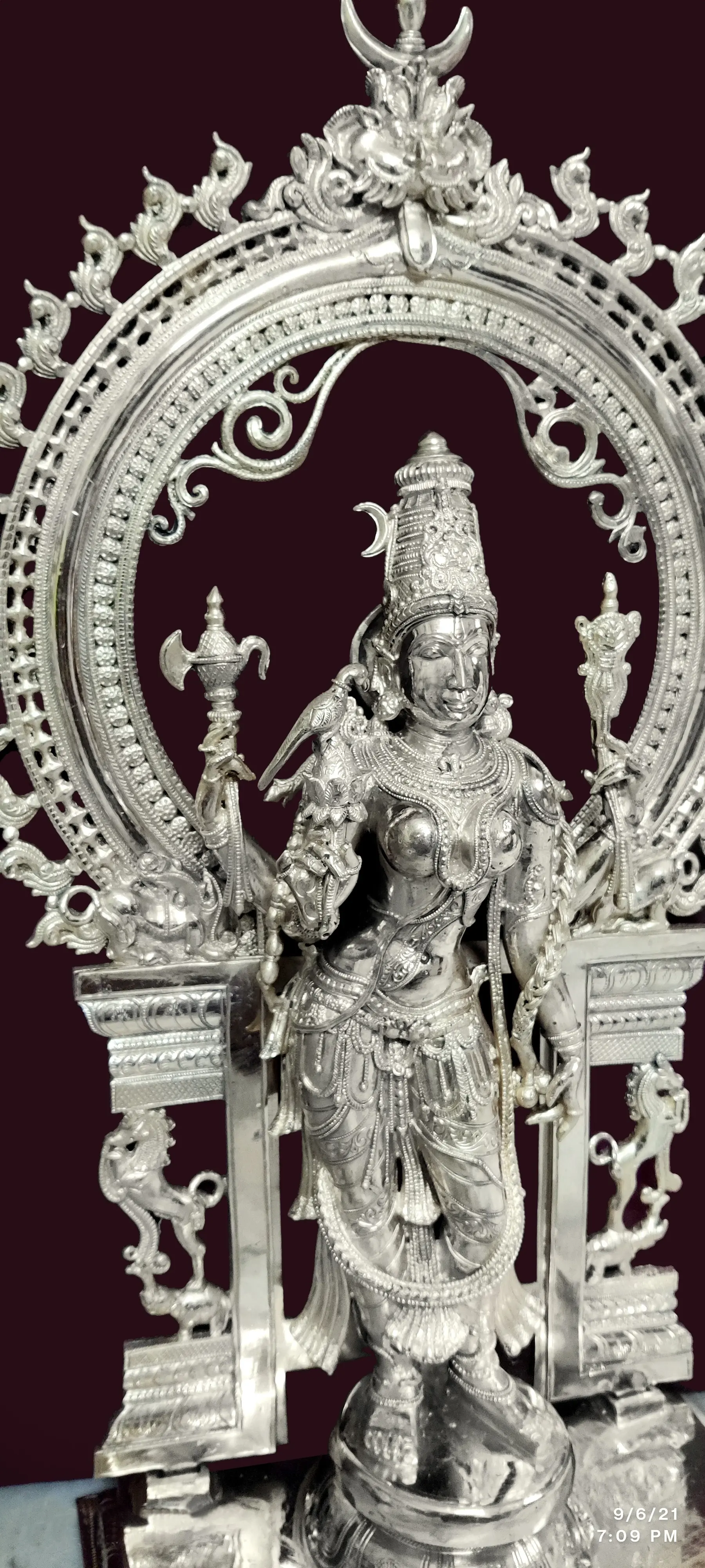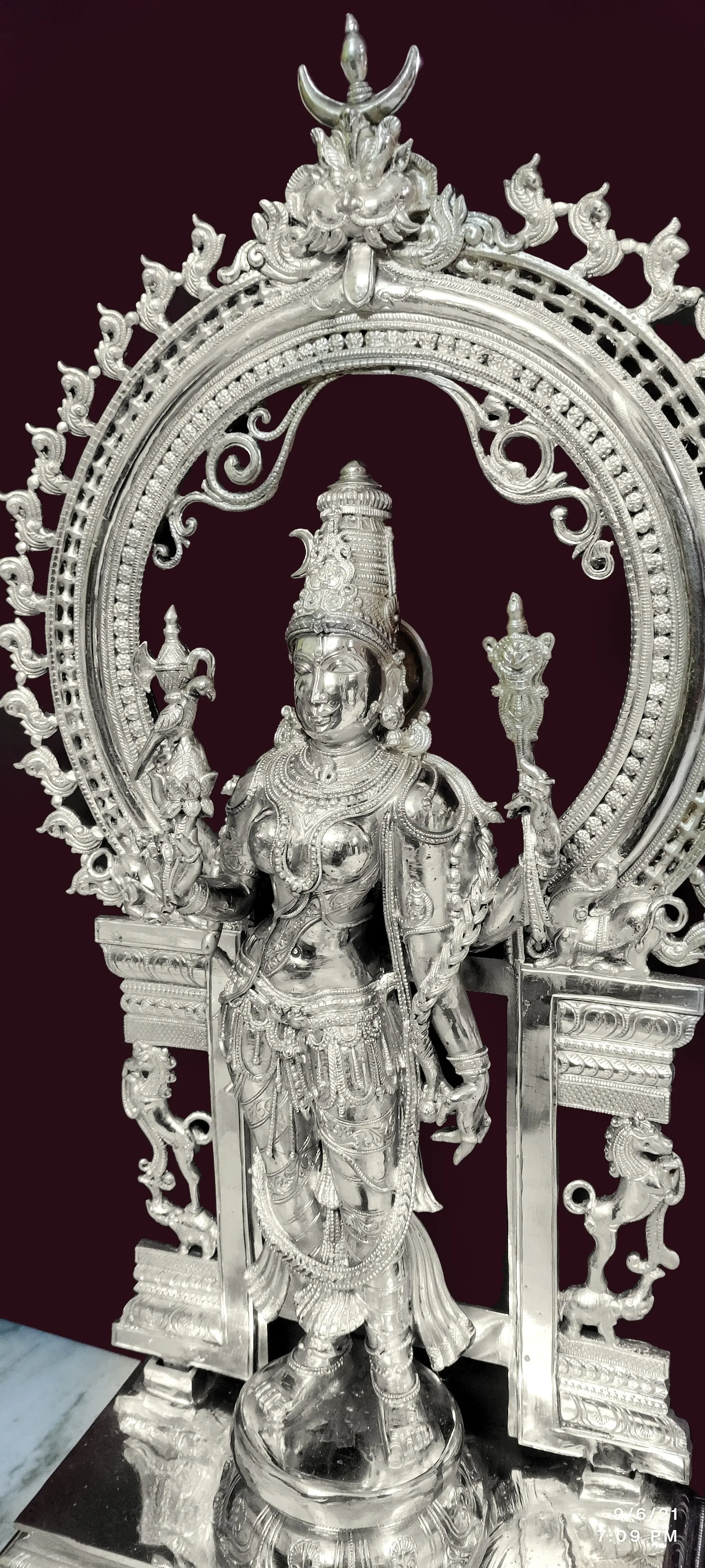 13" Goddess Parvati Panchaloha Bronze Figurine from Swamimalai | Madhuchista Vidhana (Lost-Wax)
