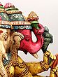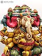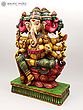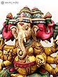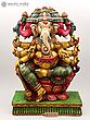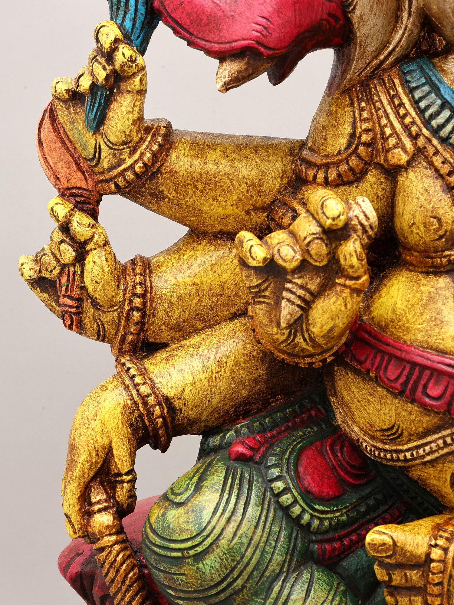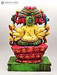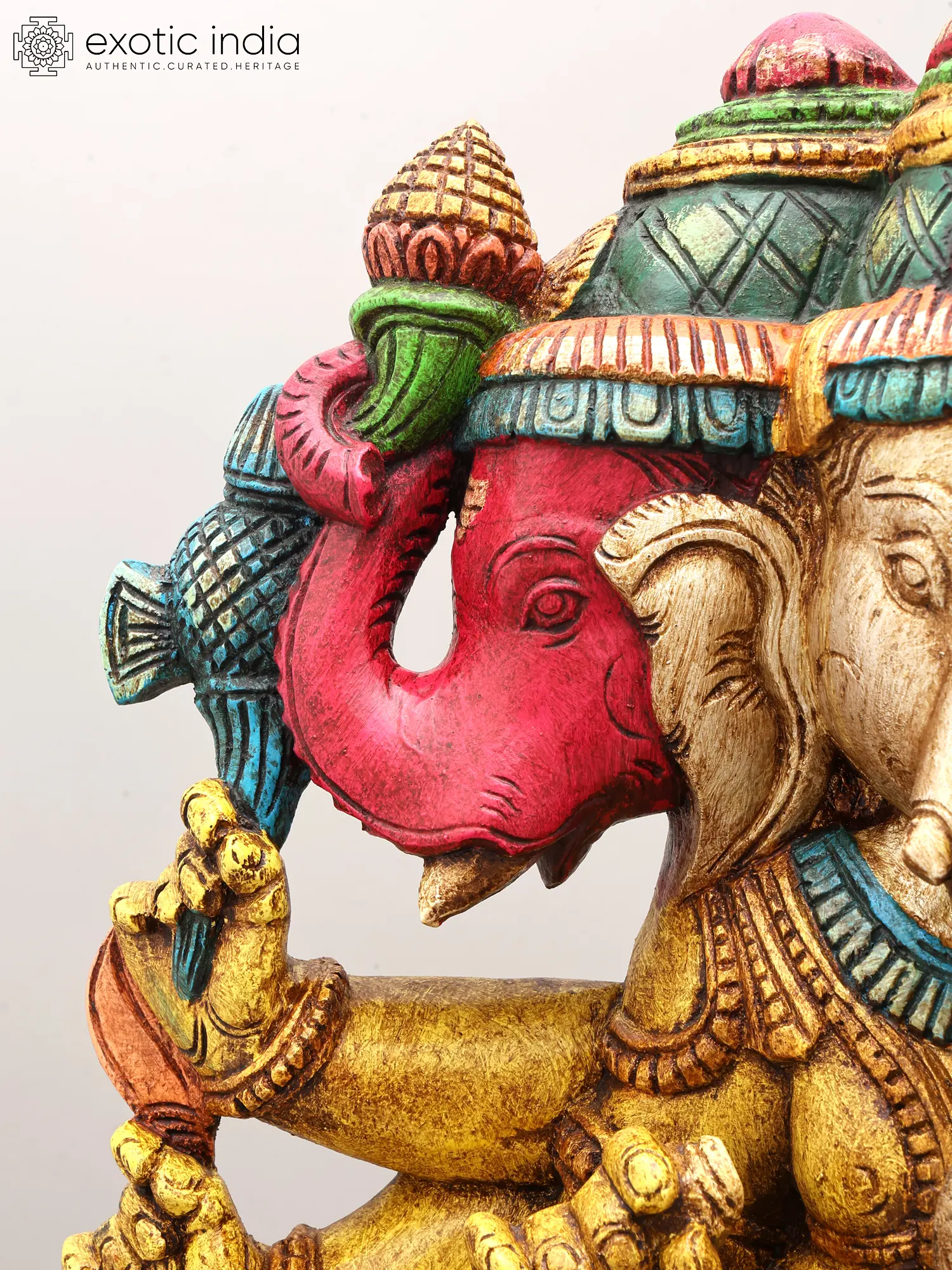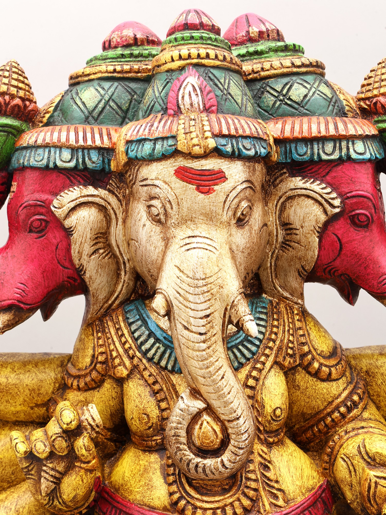24" Eight Armed and Three Headed Lord Ganesha Seated on Lotus | Wood Carving