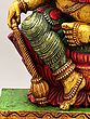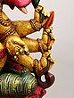 The dynamic posture of the seated deity, balanced upon a richly detailed lotus, conveys both serenity and immense power. You'll be drawn to the commanding eight arms, each poised to bestow blessings or wield symbolic instruments, reflecting the multifaceted nature of the divine. The triple-headed visage, rendered with expressive detail, further accentuates its omniscient gaze. The vibrant palette of golds, greens, and reds breathes life into the carving, highlighting the divine regalia and the textured drapery with exquisite richness. Its substantial presence, standing approximately twenty-four inches tall, ensures it commands attention and reverence.