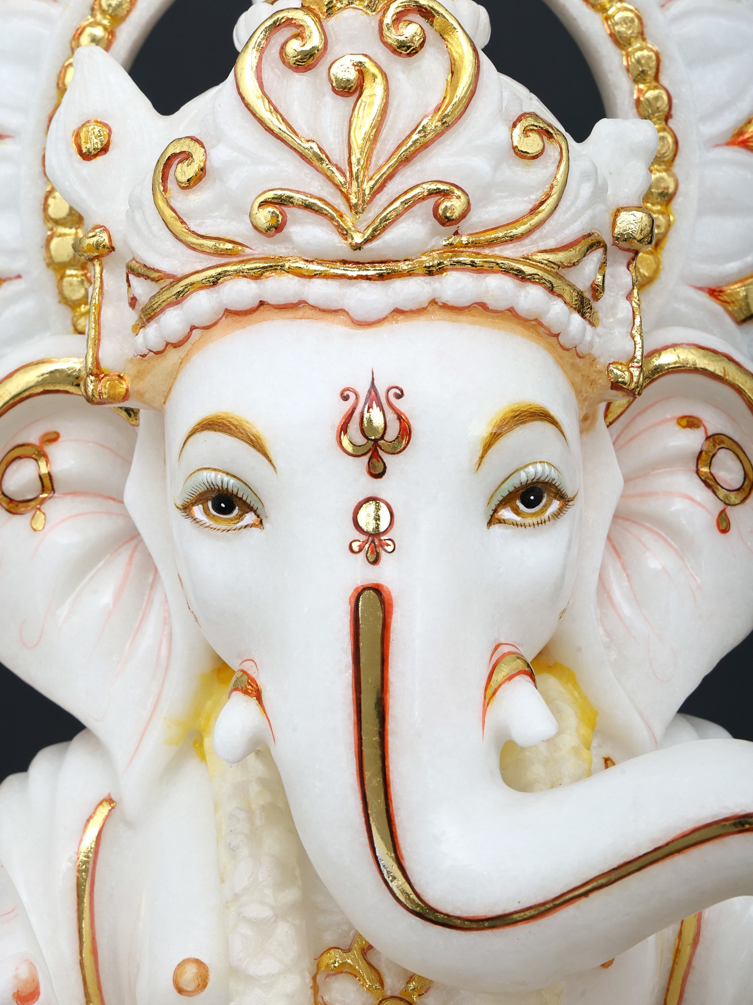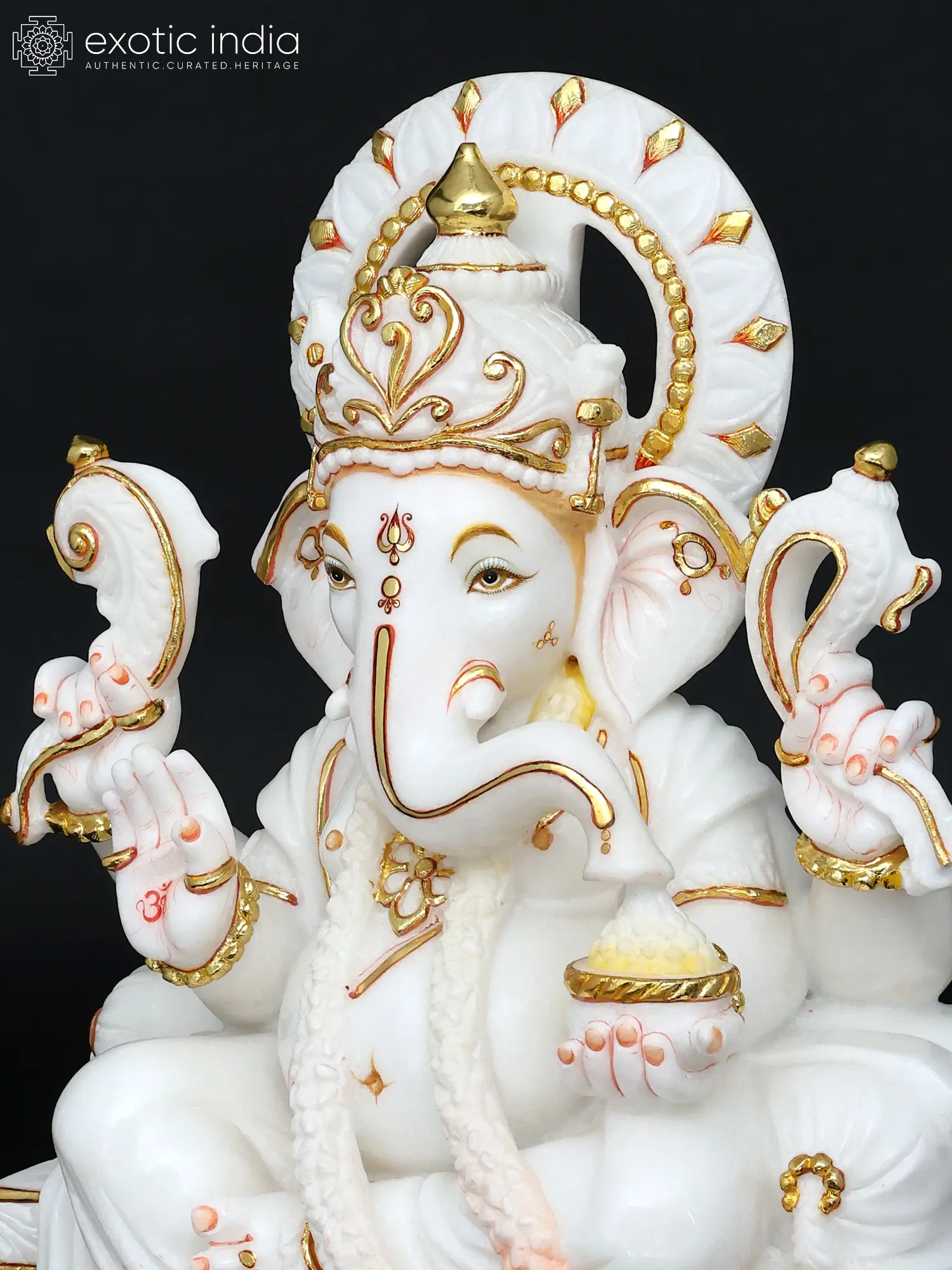 18" Lord Ganesha Seated on Lotus | Handmade | White Marble Ganesh Statue | Ganpati Statue | Vinayak | Ganpati